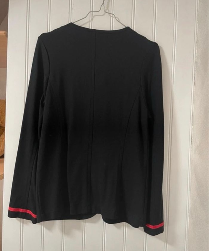 Vends veste noir avec liseré rouge , avec fermeture éclaire , taille 38 de la marque Félino. Composition : 67% rayon 28% nylon 5% spandex Je la vends 10 euros.