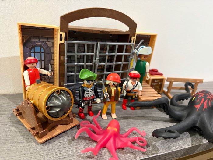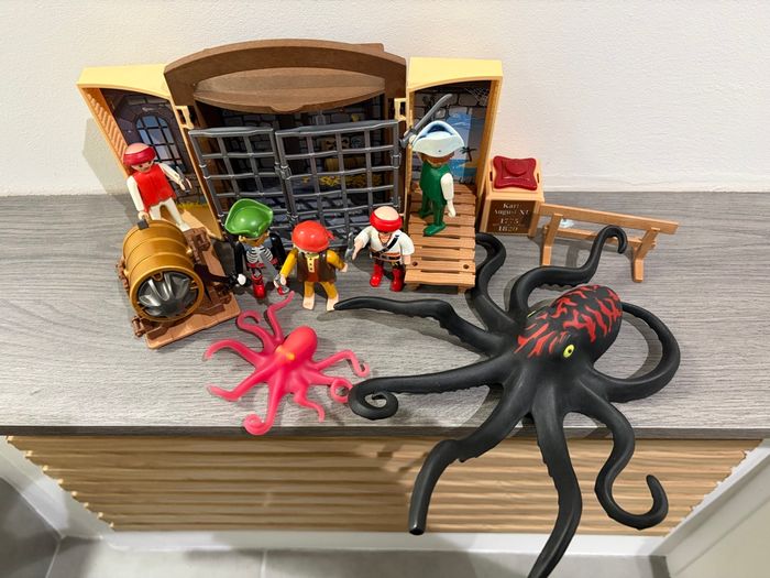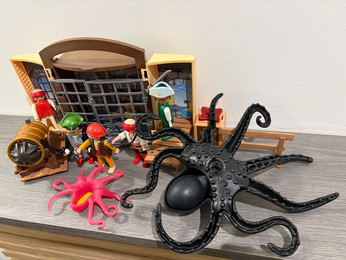 Playmobil Pieuvre et Pirates 5 Personnages pirates  2 pieuvres Canon  Cachot rétractable et 13 Accessoires  - photo numéro 1