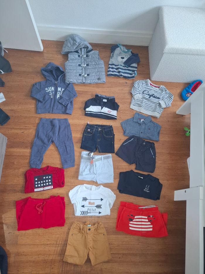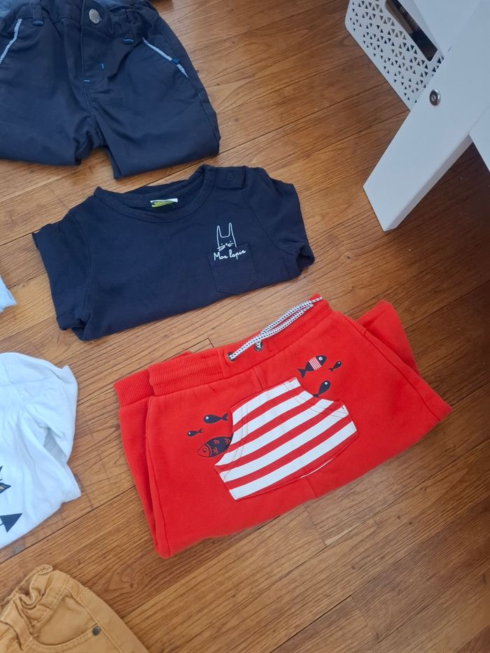Lot de vêtements en très bon état. 16 articles. PAS DENVOI COLISSIMO Diverses marques: 3 Tape a l'œil 1 Kiabi 1 Bébé réve 3 Obaibi 3 Z 2 Baby club 1 Pat et Ripaton 1 Gémo