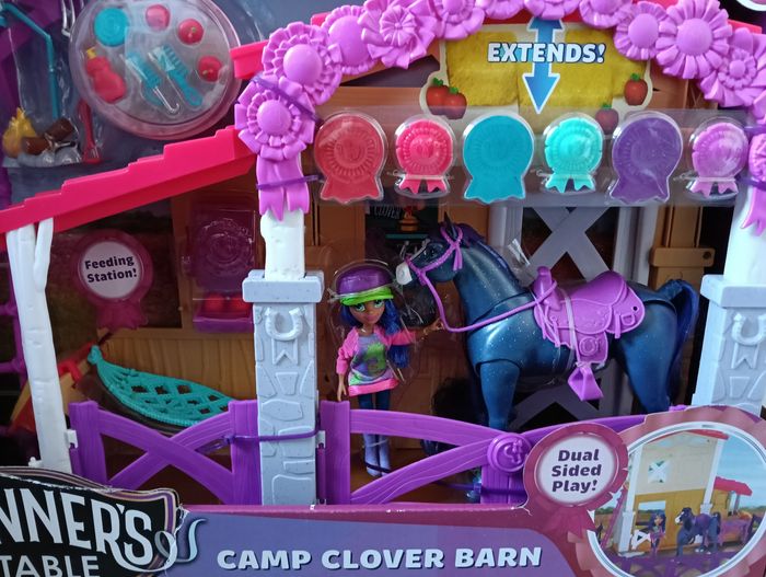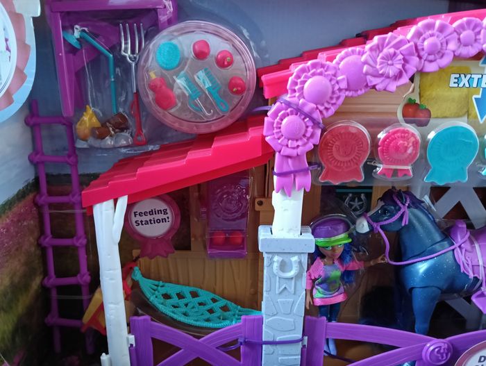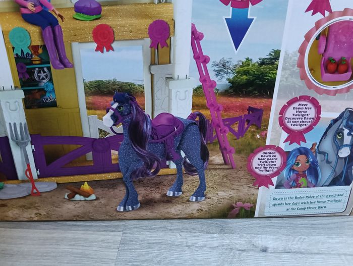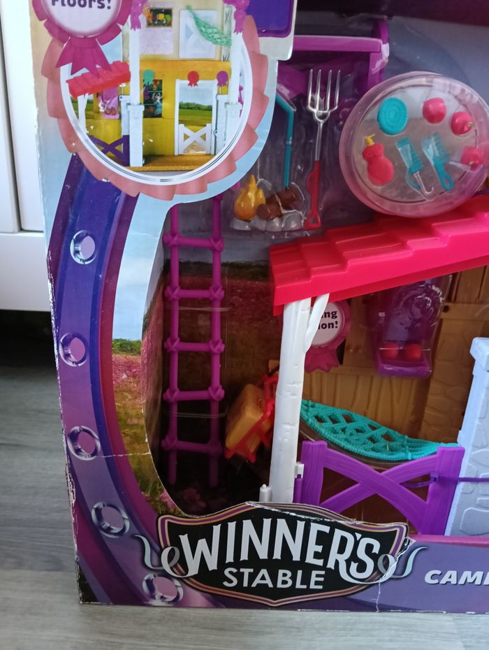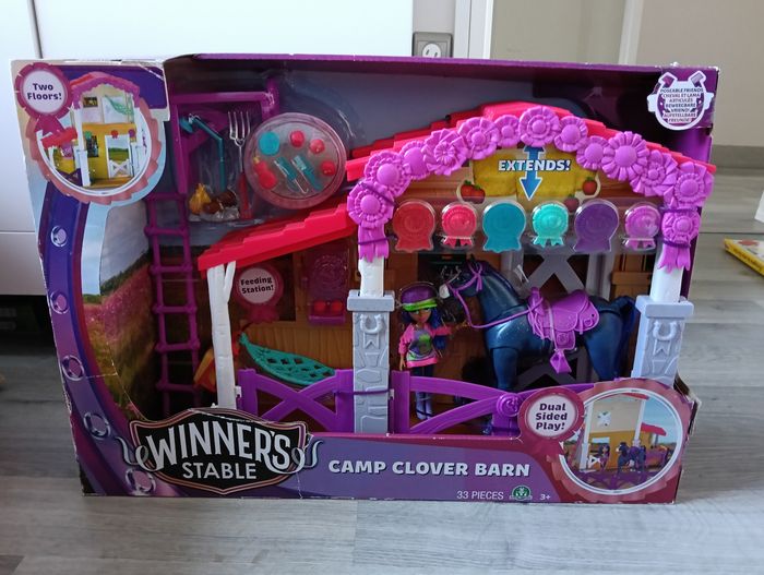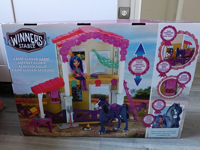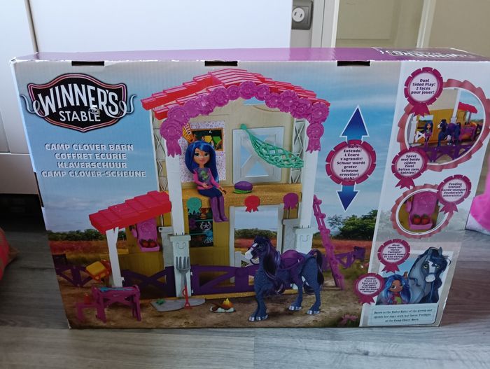 Bonjour je vends un grand coffret Écurie avec un cheval et une poupée. 33 pièces. Pleins d'accessoires de la marque Winner's stable Neuf jamais ouvert Noté que l'emballage a subi le transport comme vu sur photo