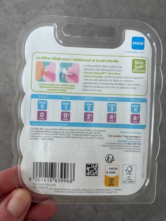 Lot de 2 tétines neuves encore emballées MAM - débit 3