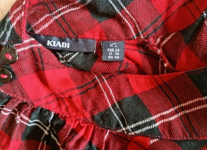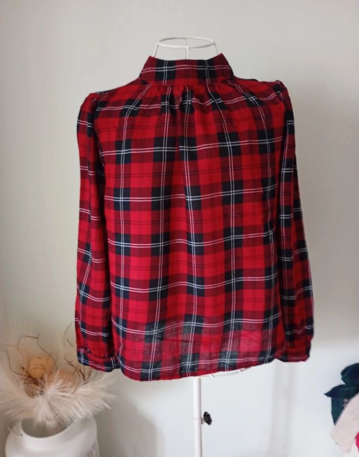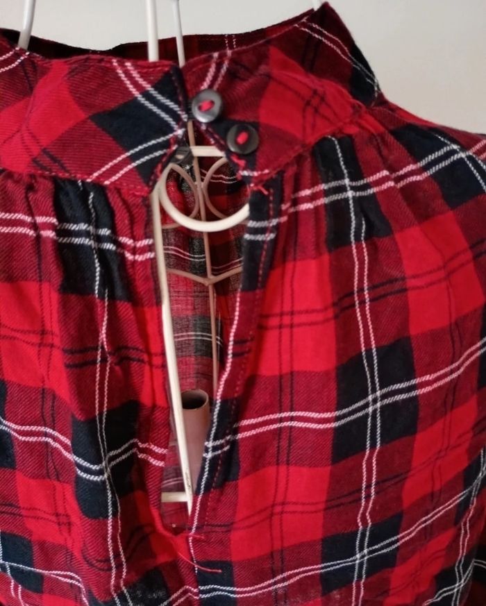 Jolie blouse carreaux noir et rouge. Se ferme par 2 petit boutons a l'arrière dans le coup. Taille xs