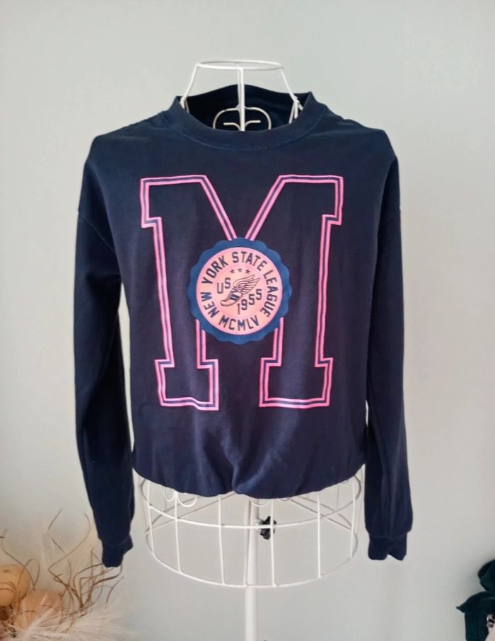 Sweat resserable à la taille. Bleu foncé. Taille 13-14 ans. Très bon état