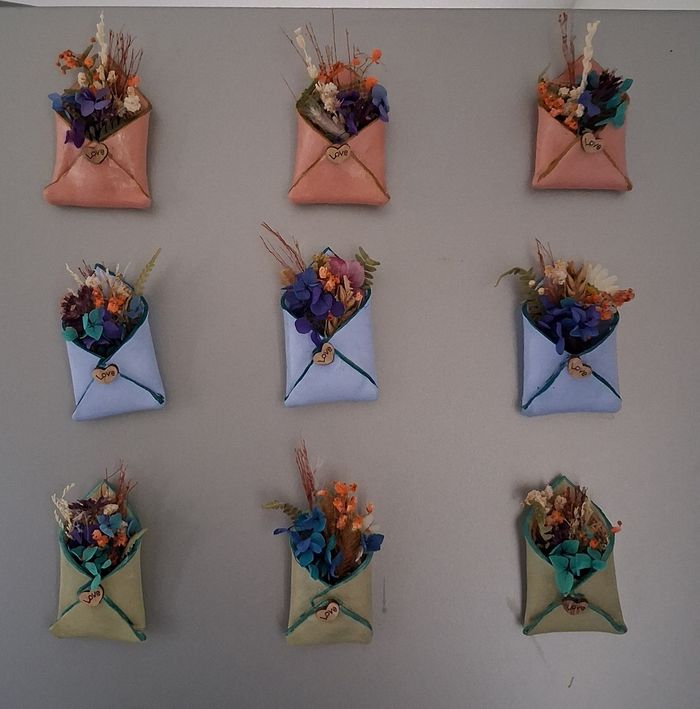 Lot de 9 aimants en argile et fleurs séchées fabrication maison