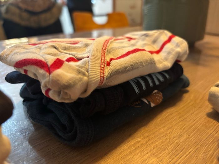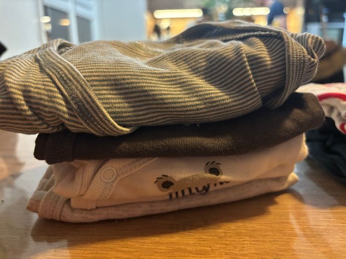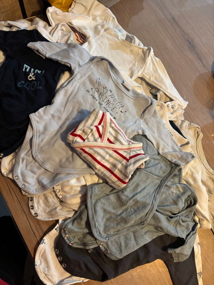 Un lot de bodies de différentes marques (petit bateau, tex, kiabi - orchestra ..) allant de 0 mois à 3 mois en bon état . 5 bodies de 0 mois 3 bodies de 1 mois 9 bodies de 3 mois Au total le lot de 17 bodies