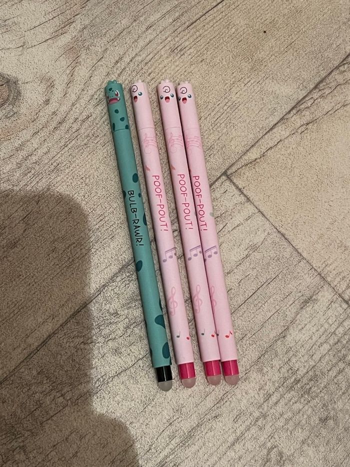 Lot de 4 stylos effaçables Pokémon neuf