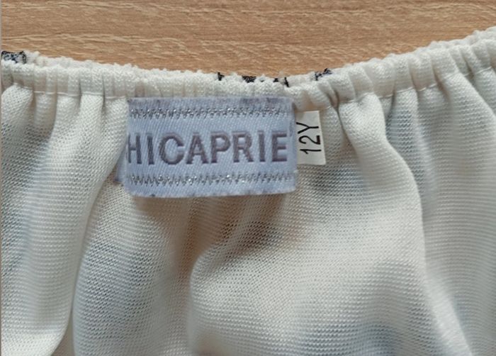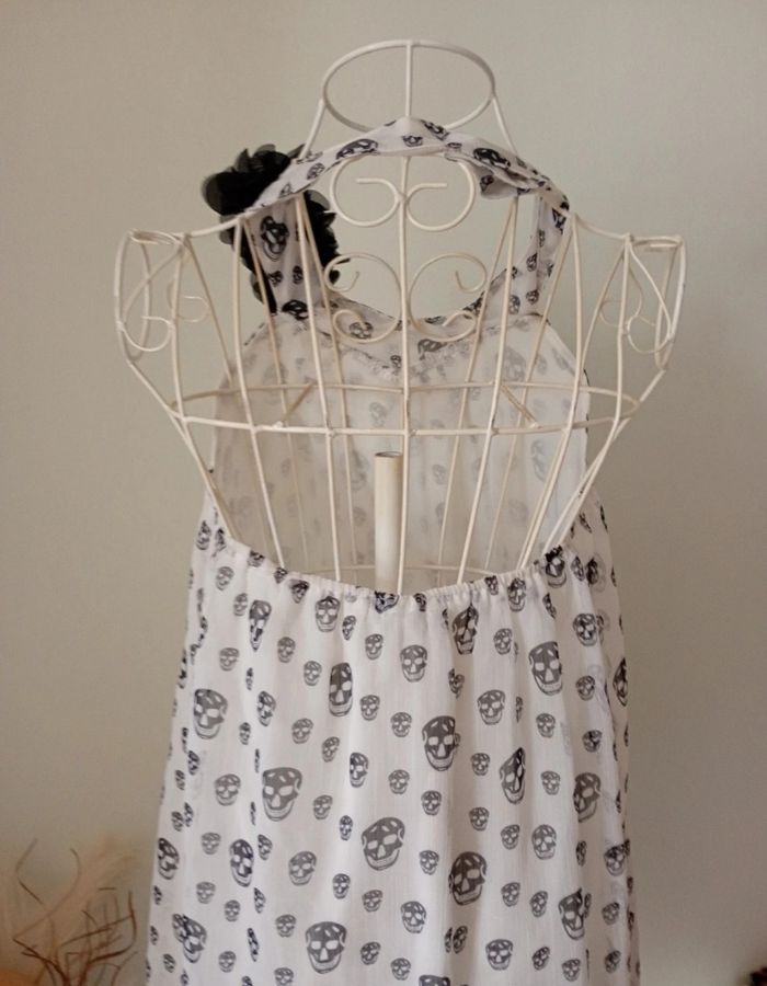 Tunique en voile doublée. Motifs têtes de morts. Dos nu. Blanc et noir. Très bon état. Taille 12 ans.