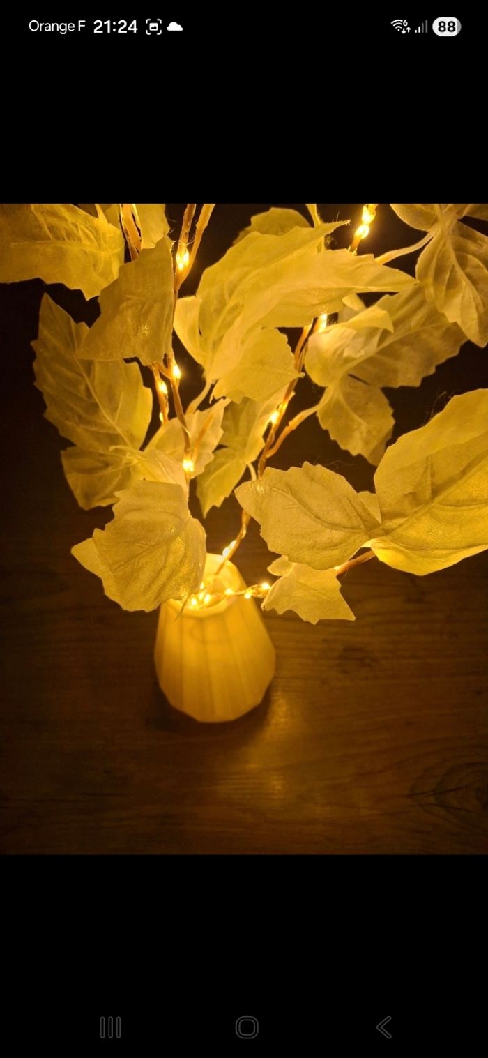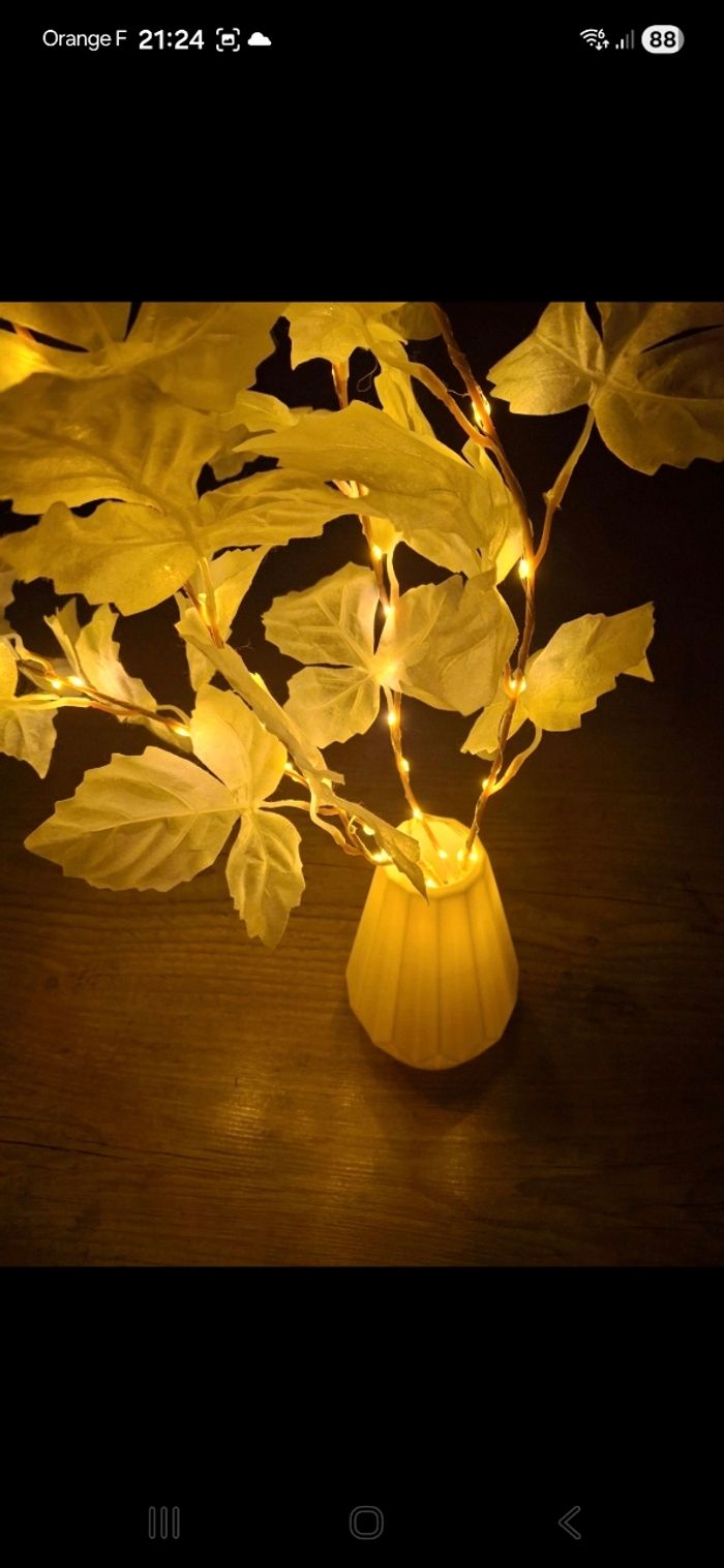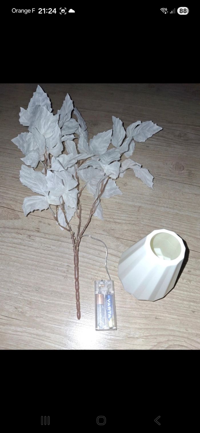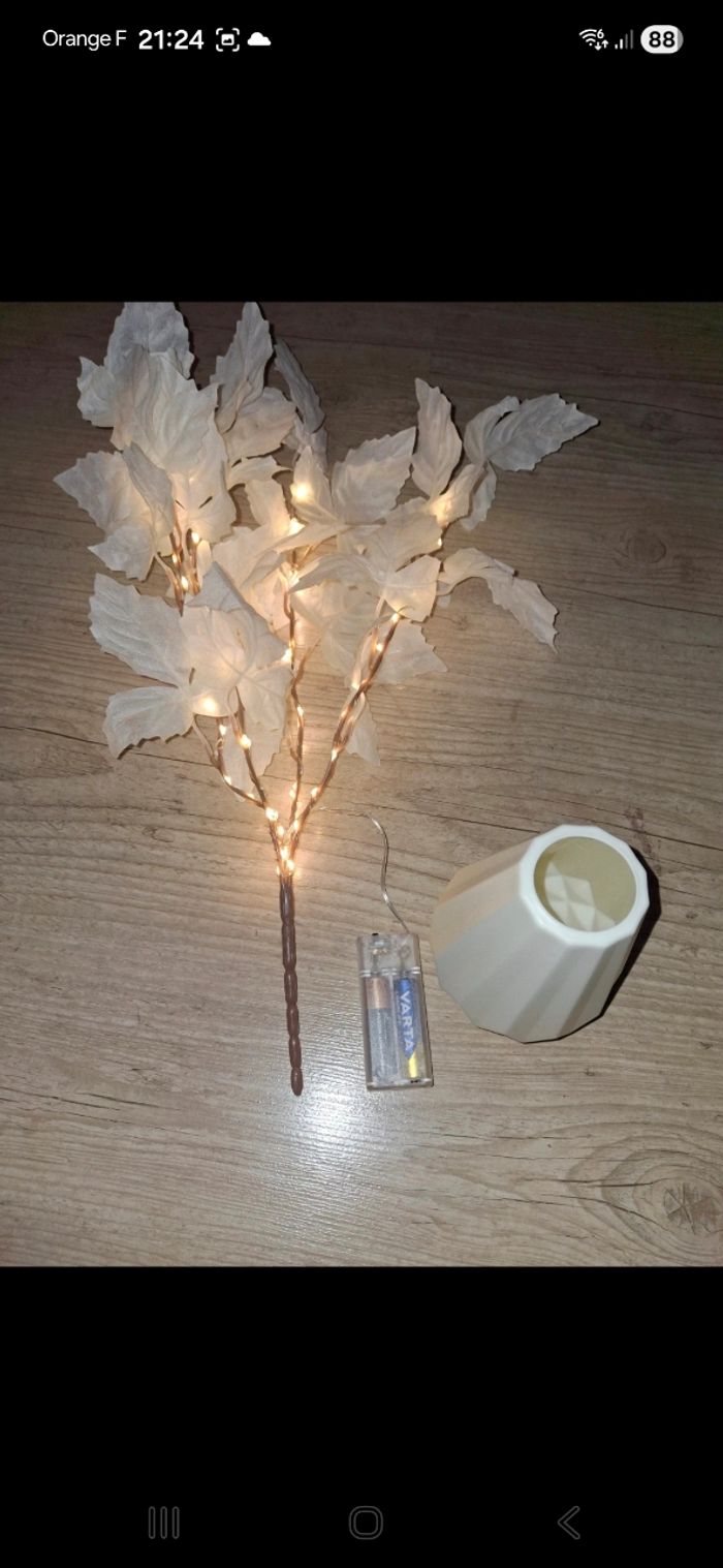 Vends fausse plante lumineuse Vendu avec le petit vase blanc en plastique Vendu SANS piles Besoin de 2 piles AA