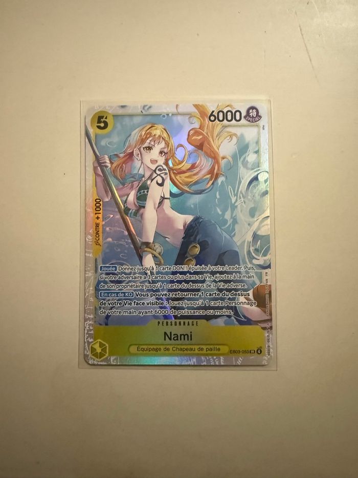 Vend Carte One Piece Nami EB03-55 SR Heroine Edition FR En parfaite état Vendu avec double sleeve et Top Loader Envoi rapide sécurisé et très bien protégé