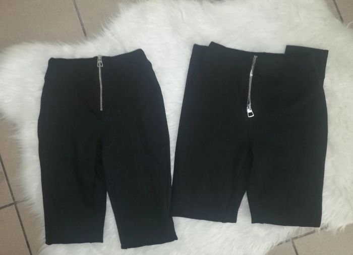 Lot de 2 pantalons style Jegging moulants. Couleur noir. Tous les deux identiques. Taille xxs équivaut à du 12 ans.