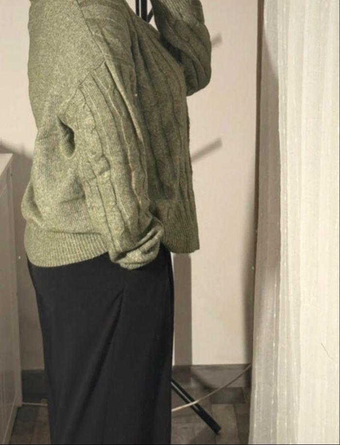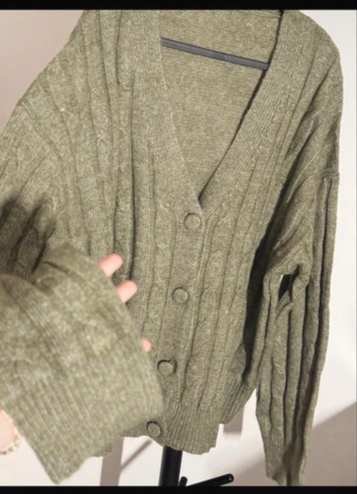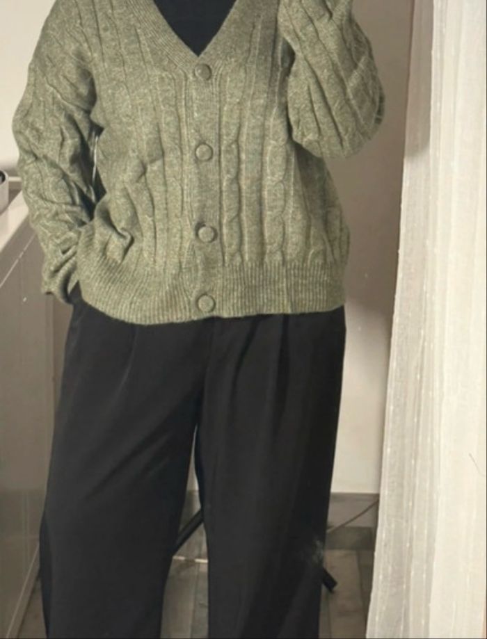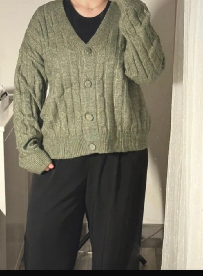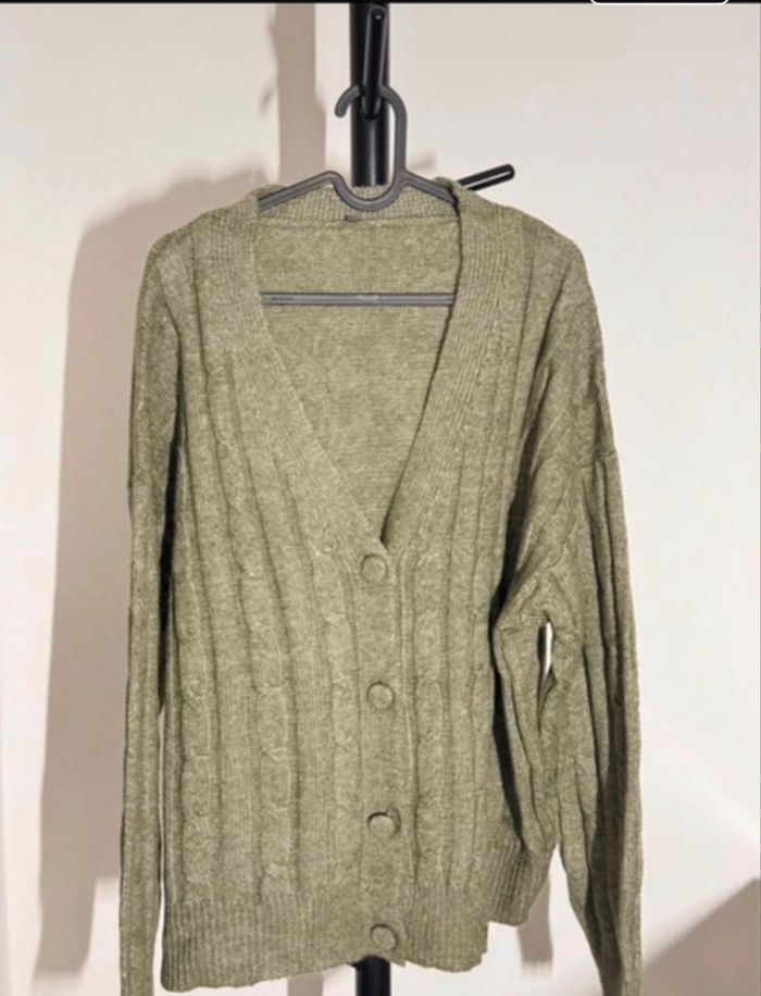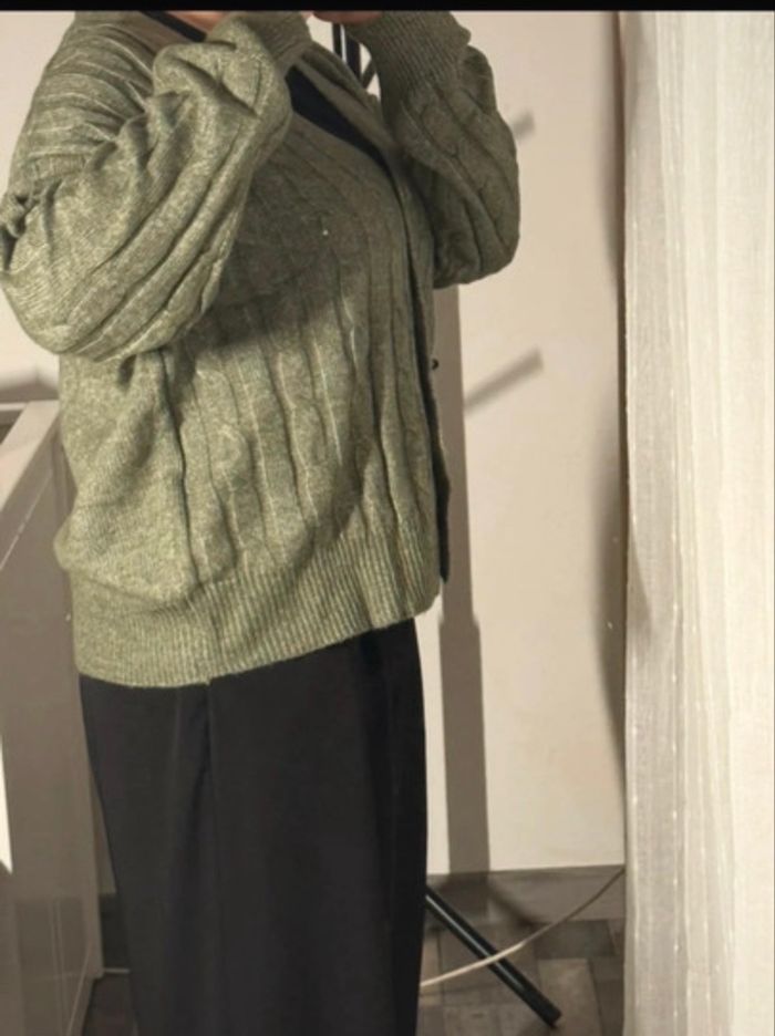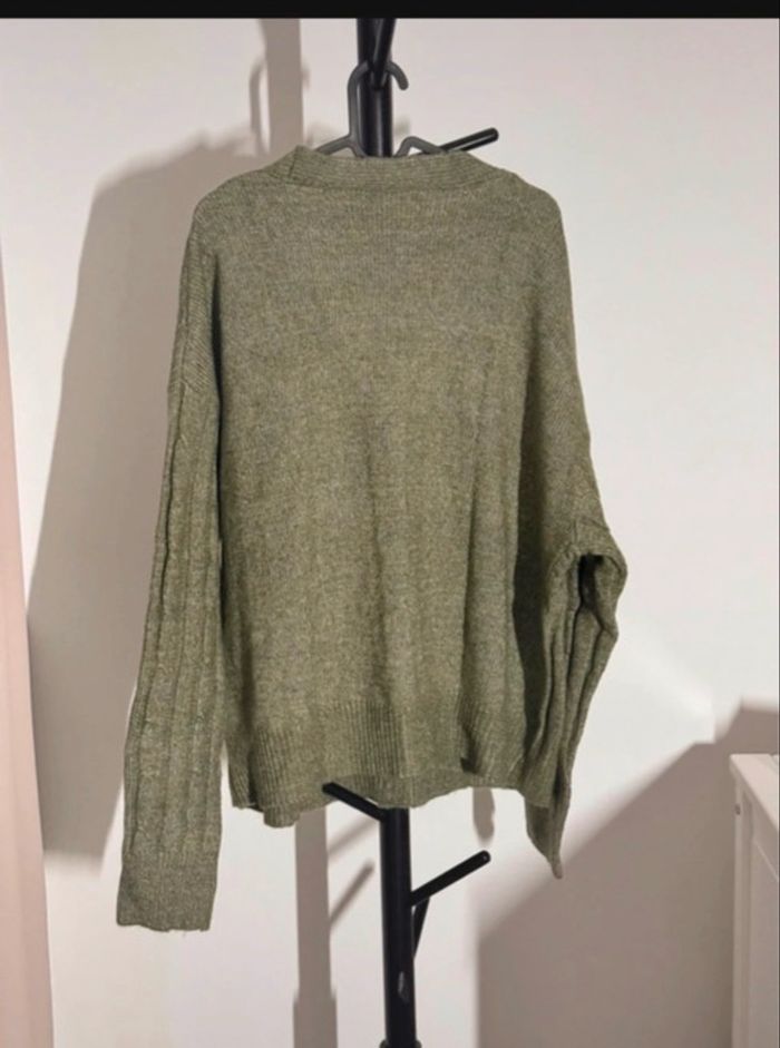 cardigan à boutons vert olive Action jamais porté sans étiquette taille XL longueur 70cm largeur 70cm tissu extensible