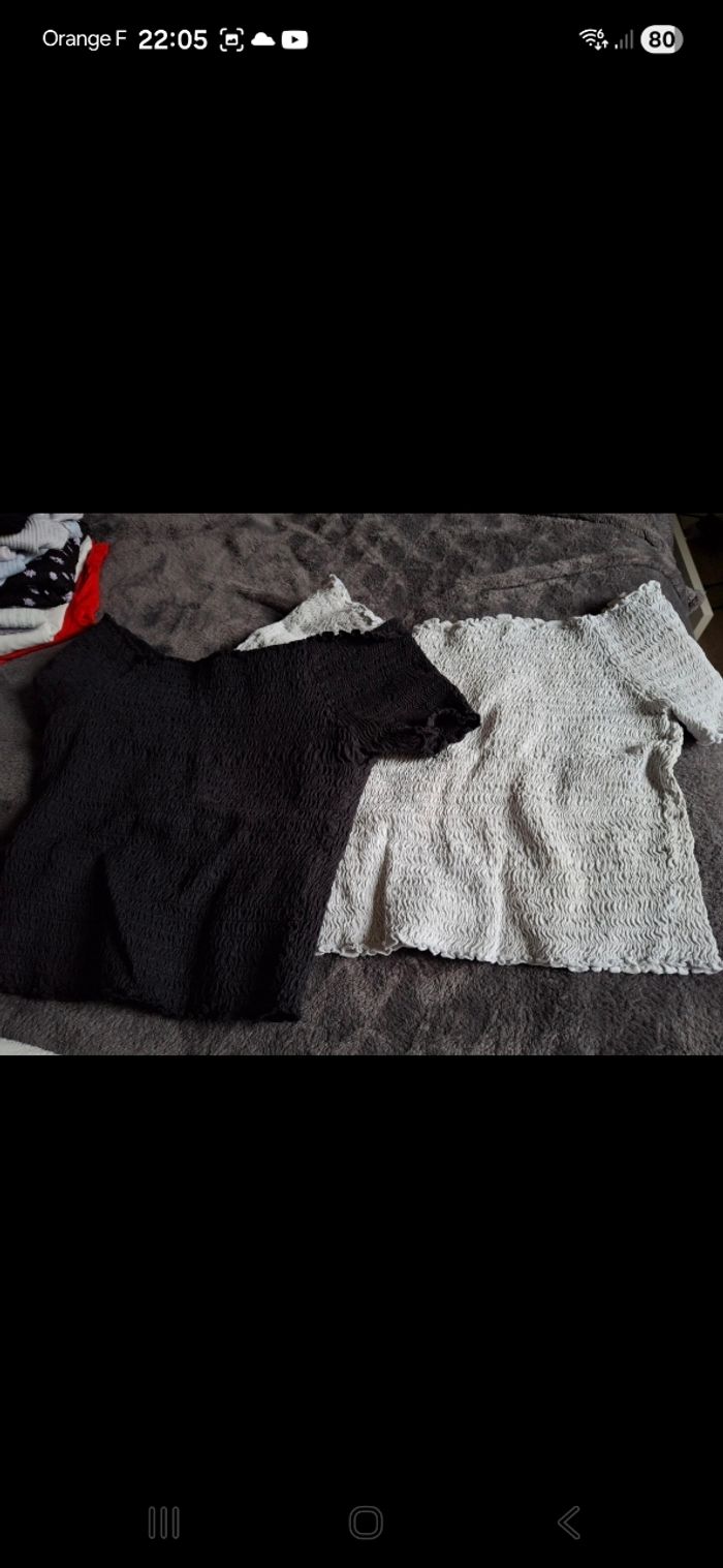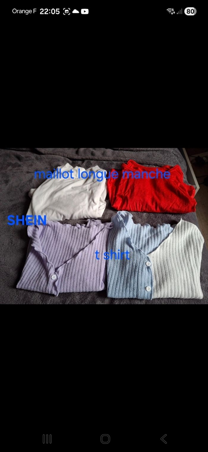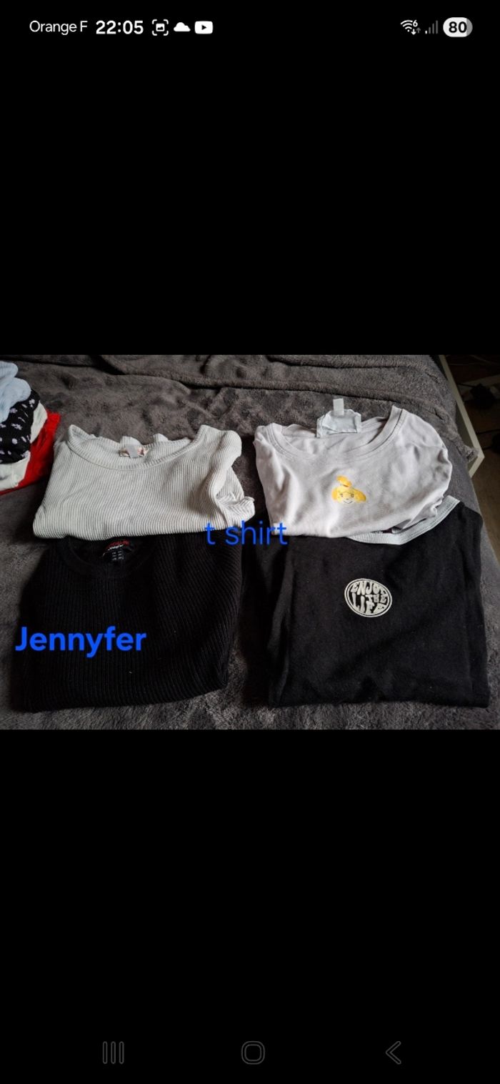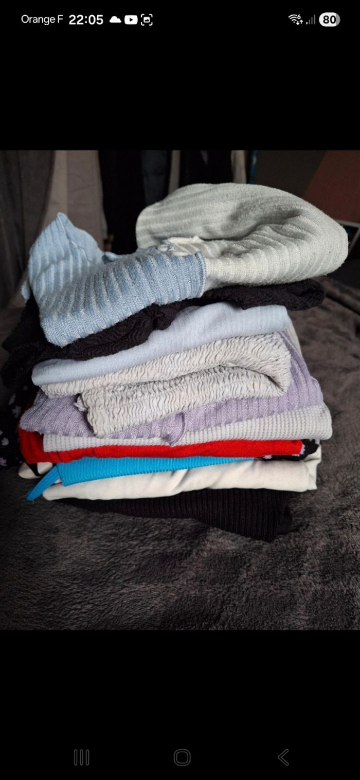 Vends lot de 14 hauts Différentes marques Taille xs ou xxs pour le maillot longue manche kiabi maks convient à un xs Bon état