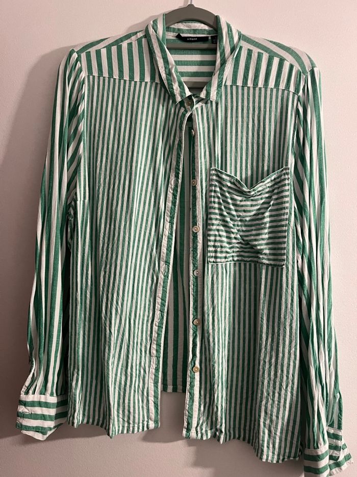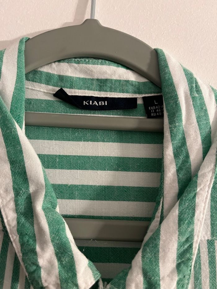 Chemise rayée blanc et vert en bon etat de marque Kiabi. Taille L