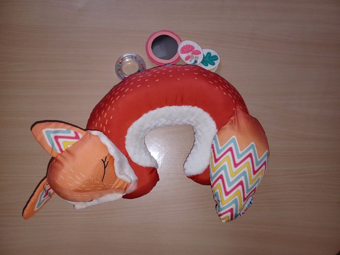 Coussin d'activités renard. Jeu d'éveil. Développe les sens, la tonicité, le renforcement musculaire en position ventrale. ARTICLE LAVE