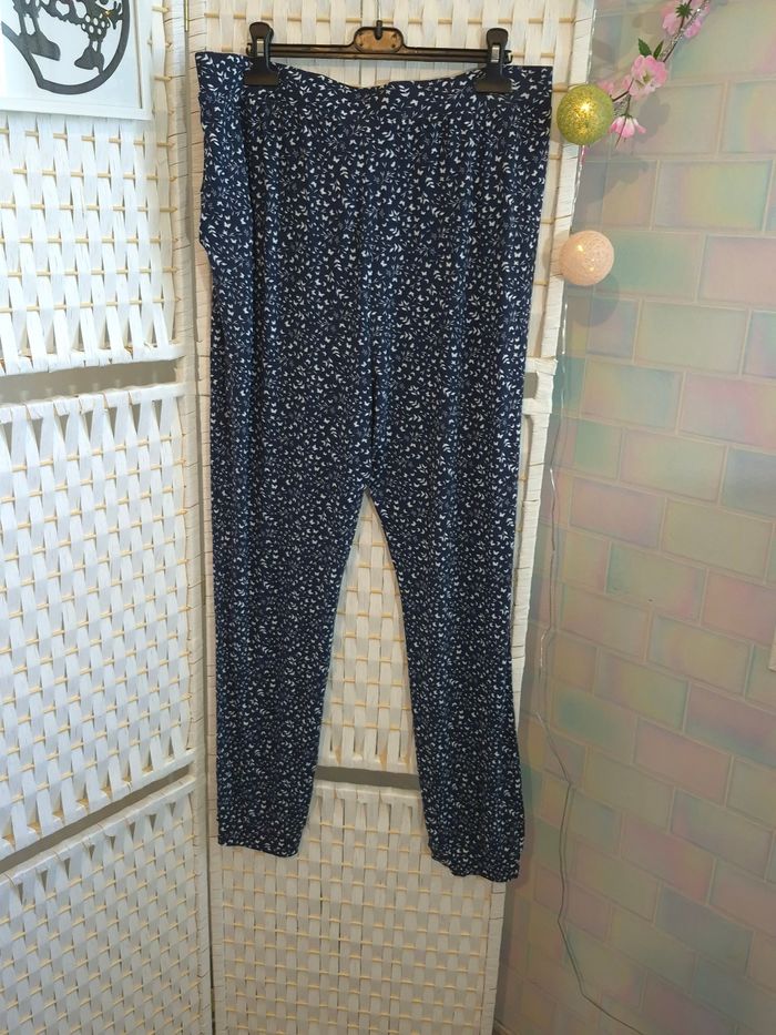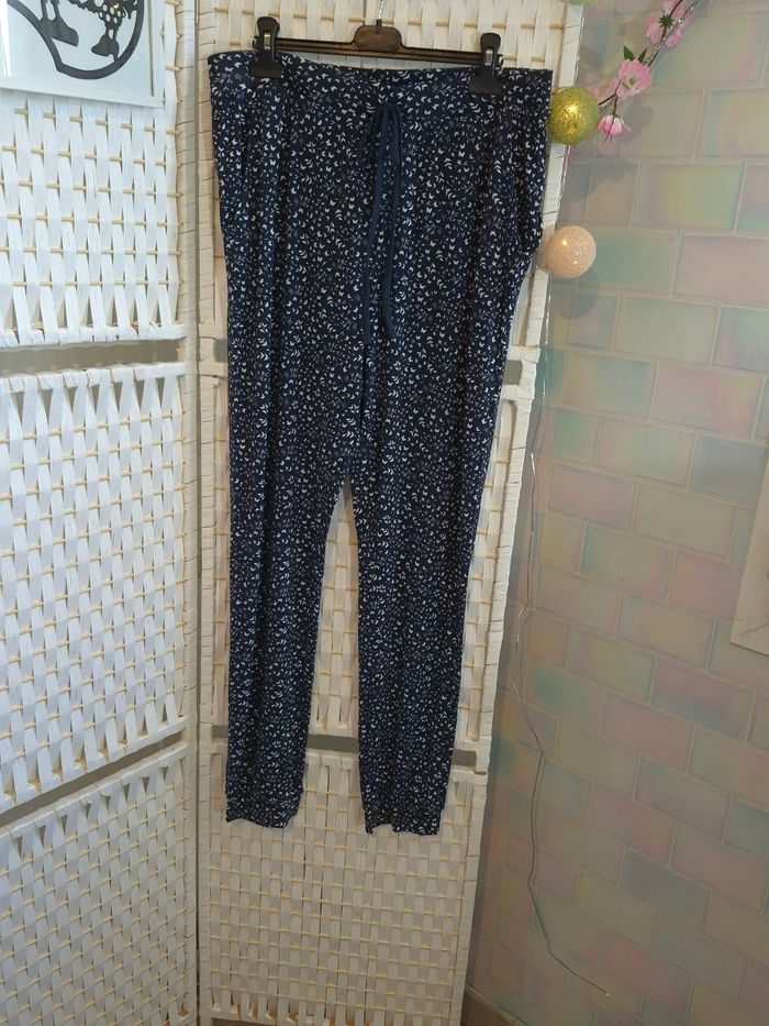 💎joli pantalon fluide bleu marine à motifs fleurs & papillons la halle femme TL / 40 - photo numéro 1