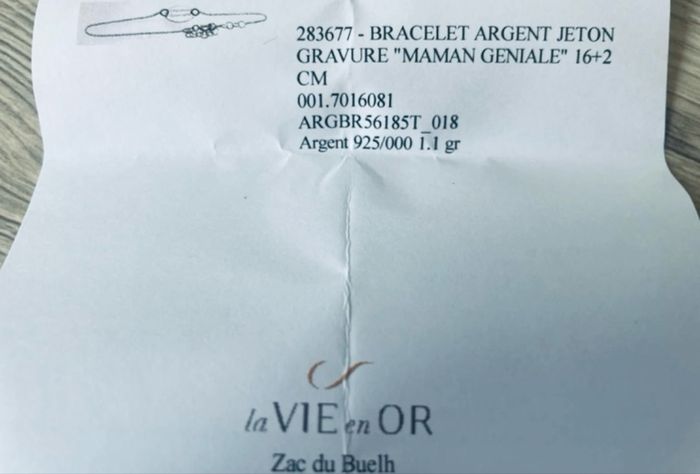 Bracelet en argent gravure maman géniale neuf