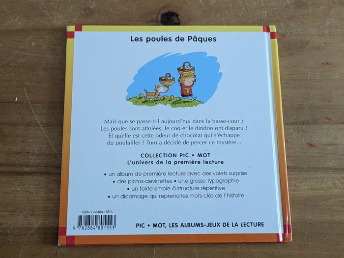 Bonjour, Je vends ce joli livre pour enfant numéro 32 "Les poules de Pâques". 1re page un peu décollée (cf photo).