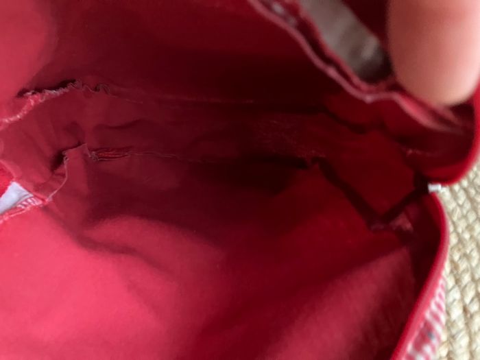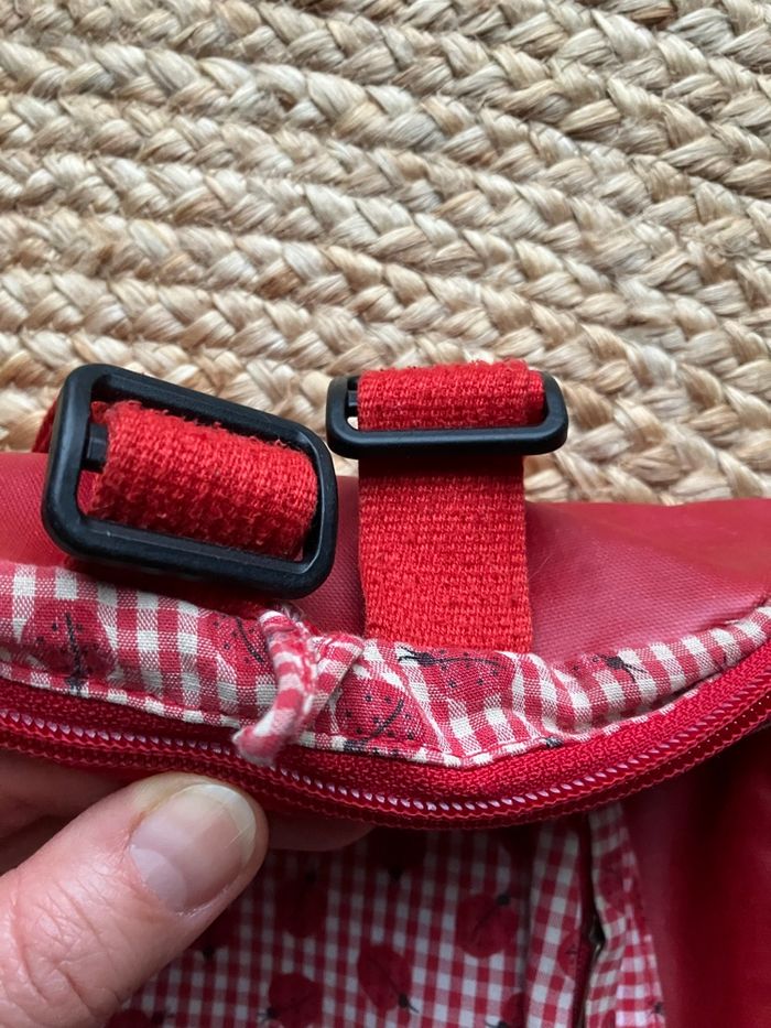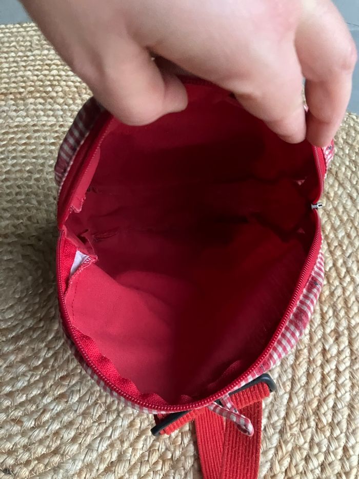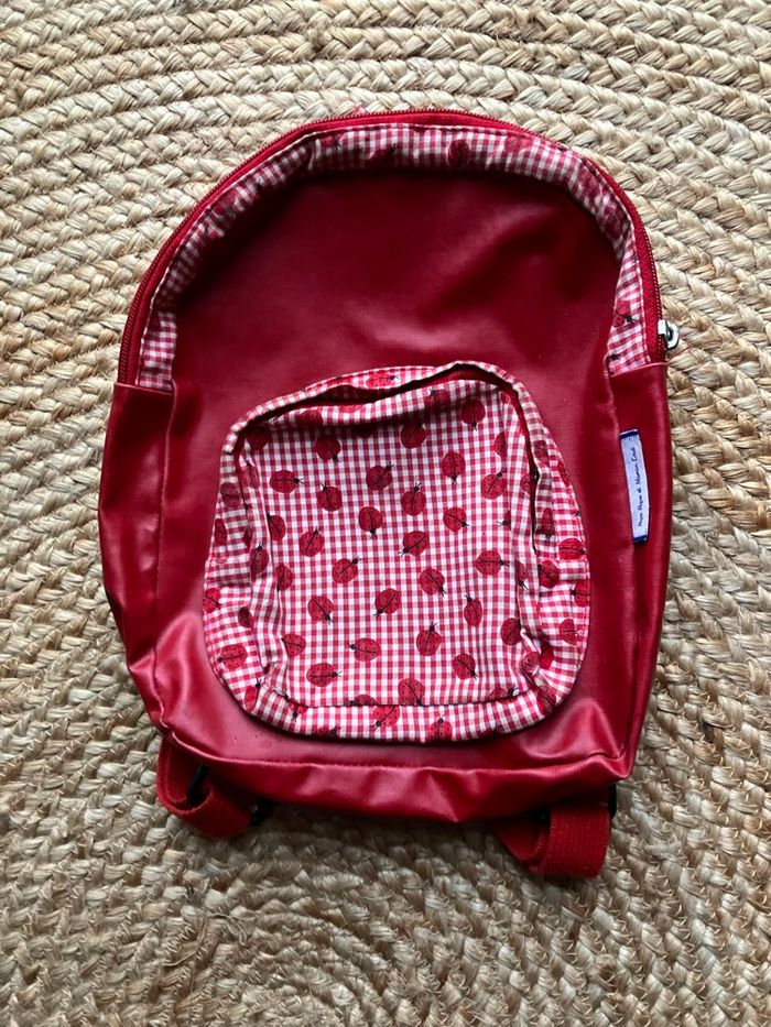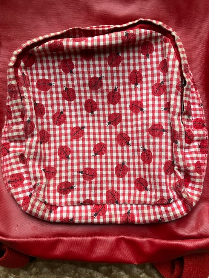 Sac à dos rouge à motifs coccinelles 🐞 Papa pique et maman coud. Utilisé mais en bon état