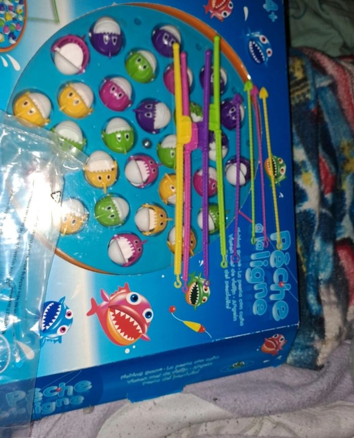 Vend Jeu de société Pêche A La Ligne Comme Neuf utilisé qu'une fois, tout les piranhas, les Canne à pêche y sont le règlement a l'intérieur également, la boîte est légèrement usée avec le temps comme indiqués sur les 3 dernières photos, il ne manque rien. ⚠️ Seulement en livraison et Non en main propre. Éxpedition très rapide et bien emballé 📦