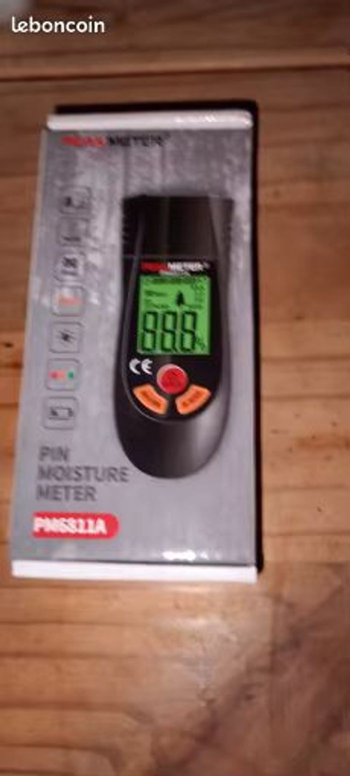 Je vends cet humidimètre PEAKMETER PM6811A, un outil de précision idéal pour mesurer l'humidité dans les matériaux de construction. Parfait pour diagnostiquer les problèmes d'humidité rapidement et efficacement.