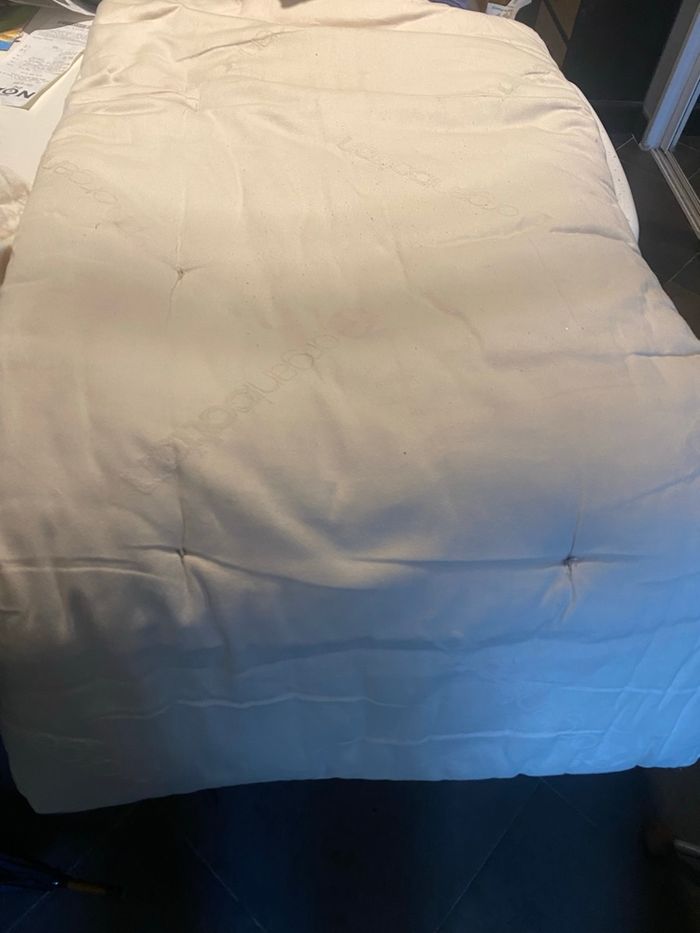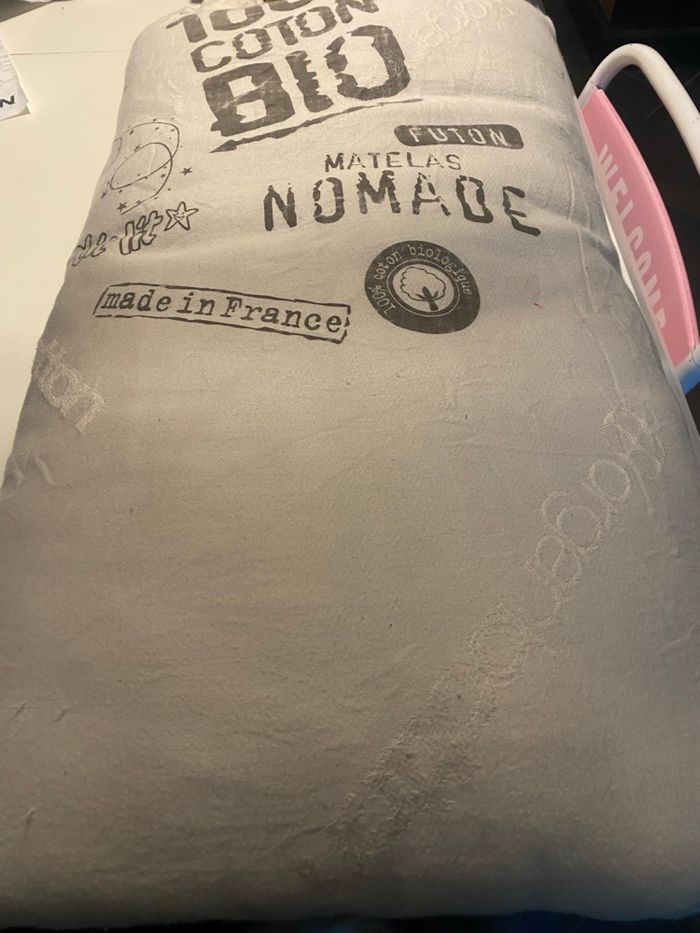 À vendre, matelas d'appoint (type futon) de la marque française P'tit Lit, idéal pour les siestes, les déplacements (vacances, grands-parents) ou pour créer un coin lecture au sol. • Dimensions : 110 x 60 cm. • Composition Premium : Extérieur et garnissage 100% coton bio (plus sain et respirant). • Pratique : Très léger, il se roule facilement pour être transporté. • État : [Précisez ici s'il est Très bon état / Bon état]. • Origine : Fabrication française. Produit de qualité, sans matières synthétiques.