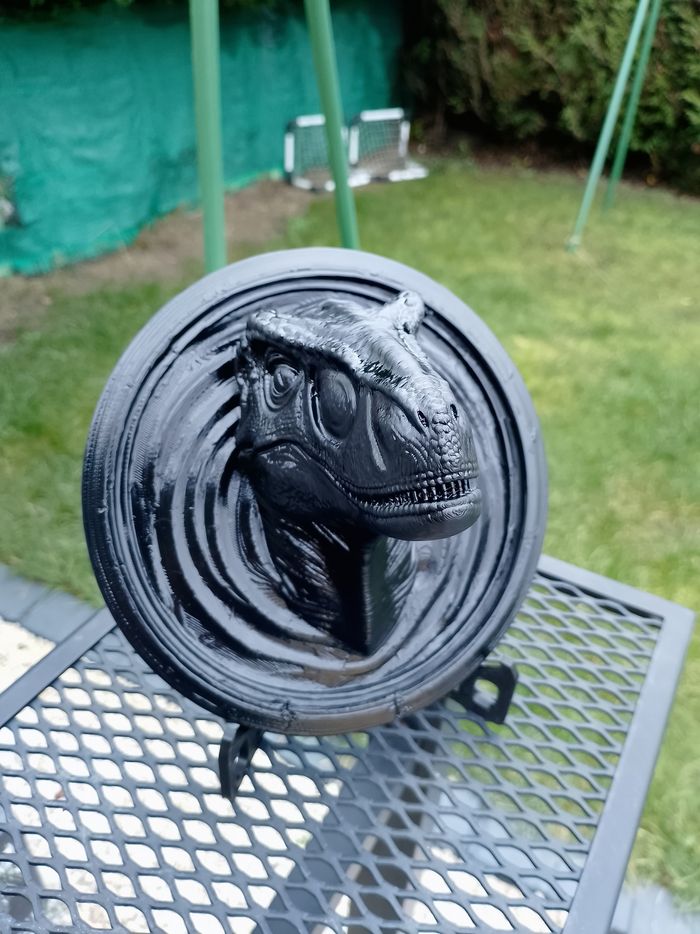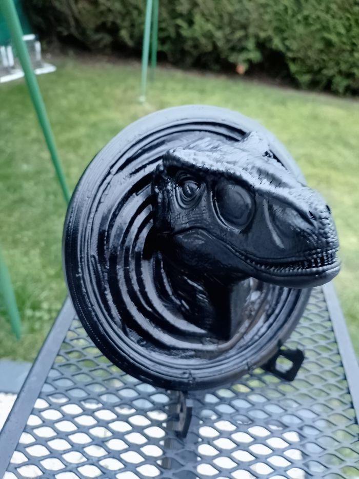 Figurine impression 3D décoratif Velociraptor Figurine en relief Diamètre de la plaque 18 cm Hauteur du relief de la tête 12 cm Hauteur de la plaque 1,5 cm Couleur noire Vendu avec le support Neuve N'hésitez pas à demander si vous souhaitez des renseignements