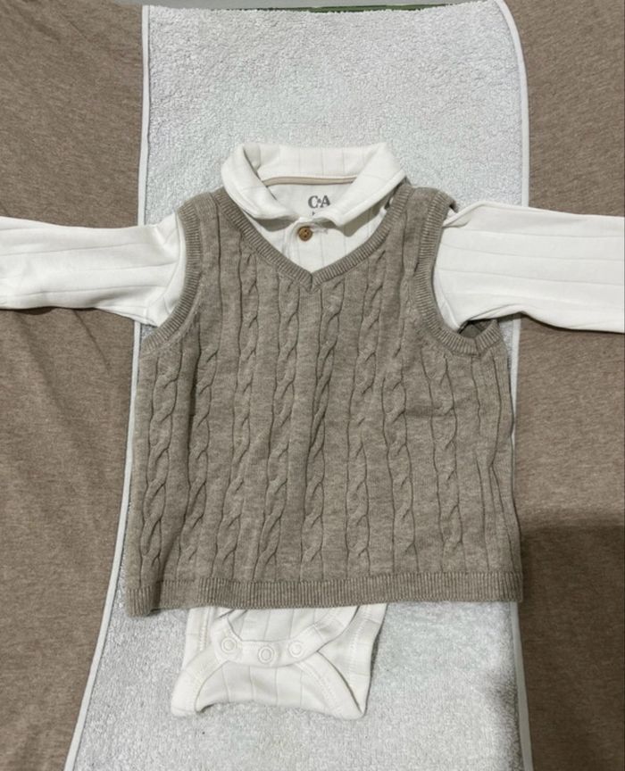 Belle ensembles : Body , sur pull ainsi que le pantalon. Porté 1 fois, taille 6 mois 68cm.