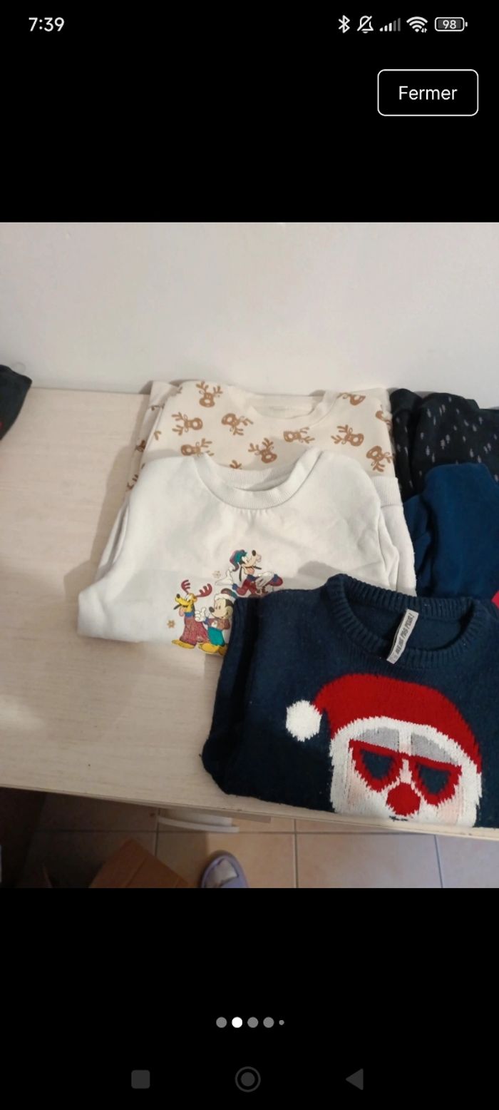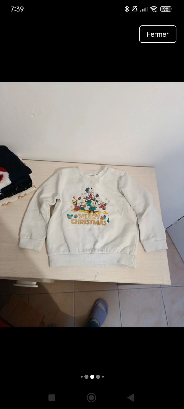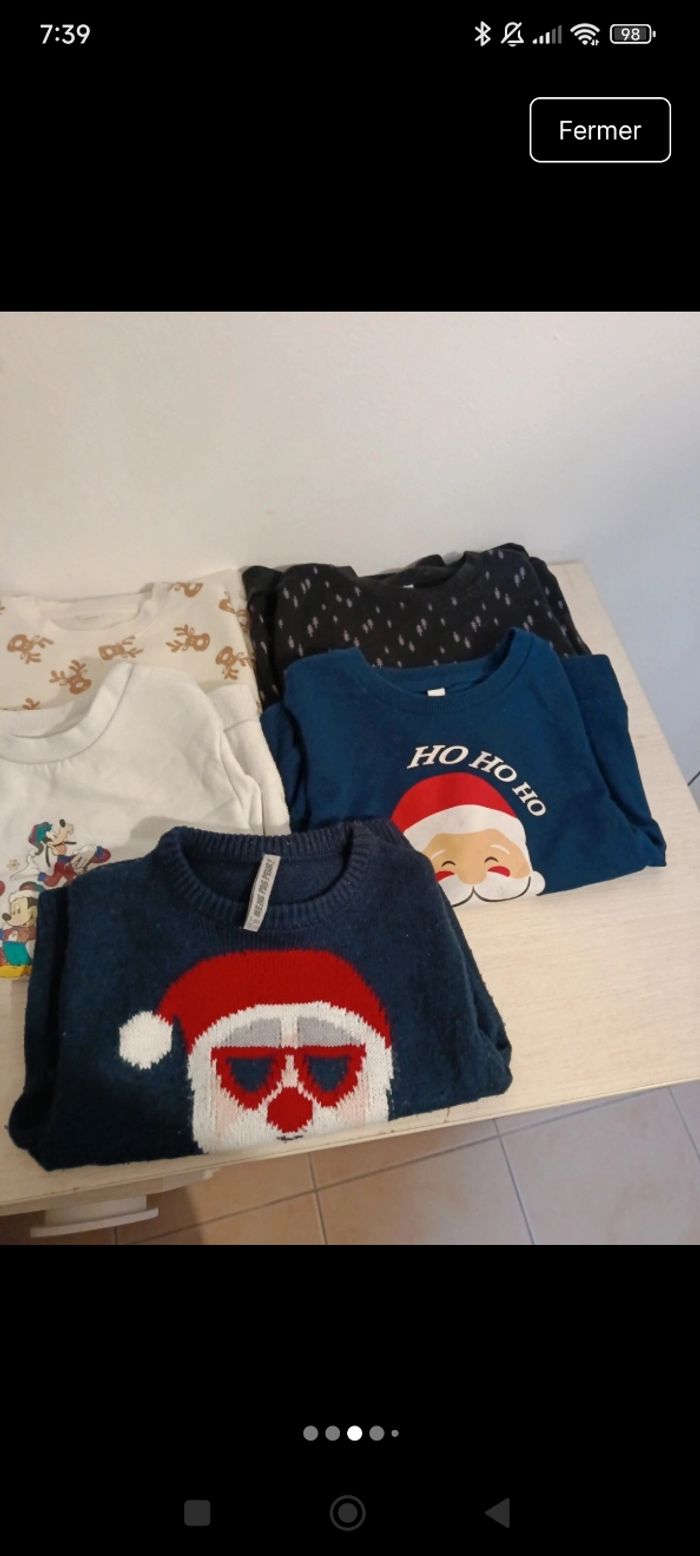 Lot 5 pulls Noël Tres bonne état sauf le mickey dessin un peu passer 3ans