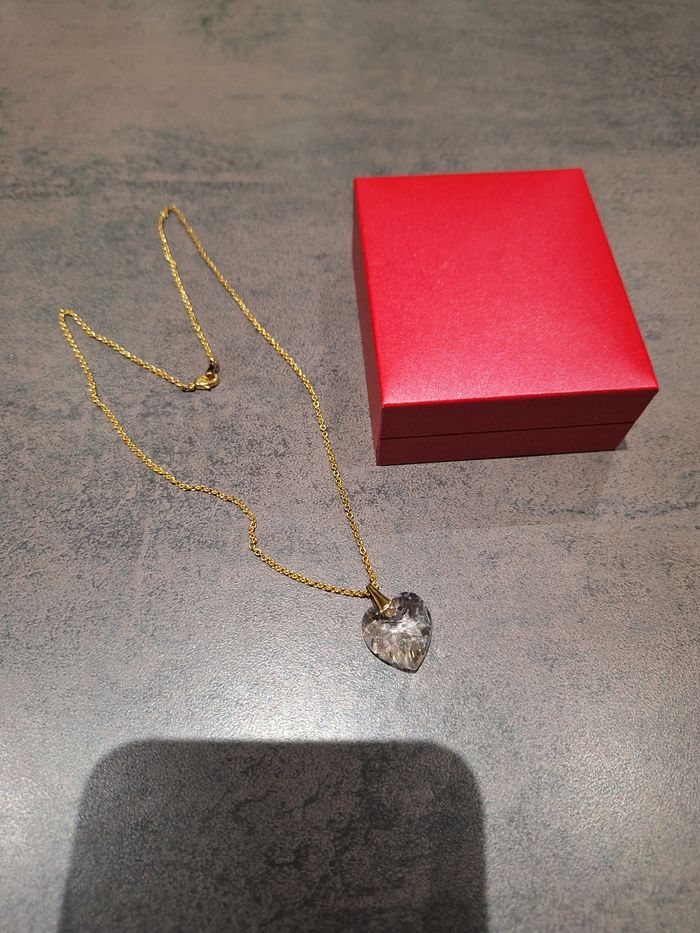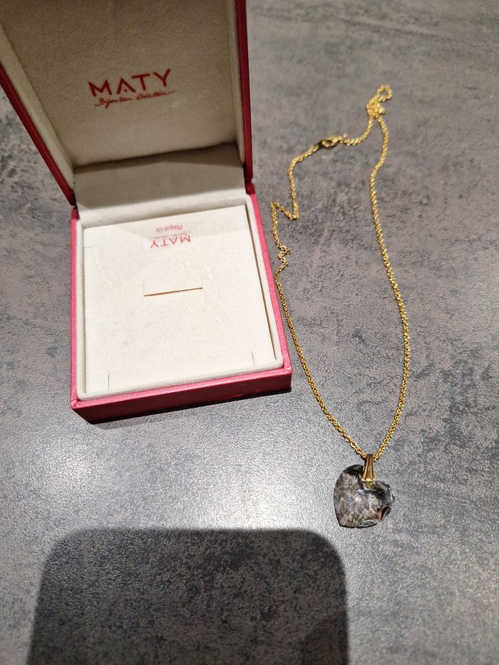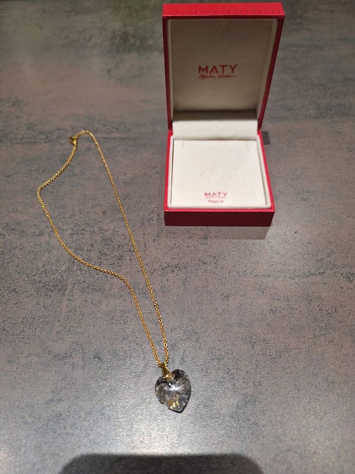 Magnifique collier NEUF en plaque or de la grande bijouterie française MATY. Avec un pendentif en cœur en cristal de style Schwarowsky. Dans sa boîte d origine Je peux mesurer la taille de la chaîne si vous le souhaitez