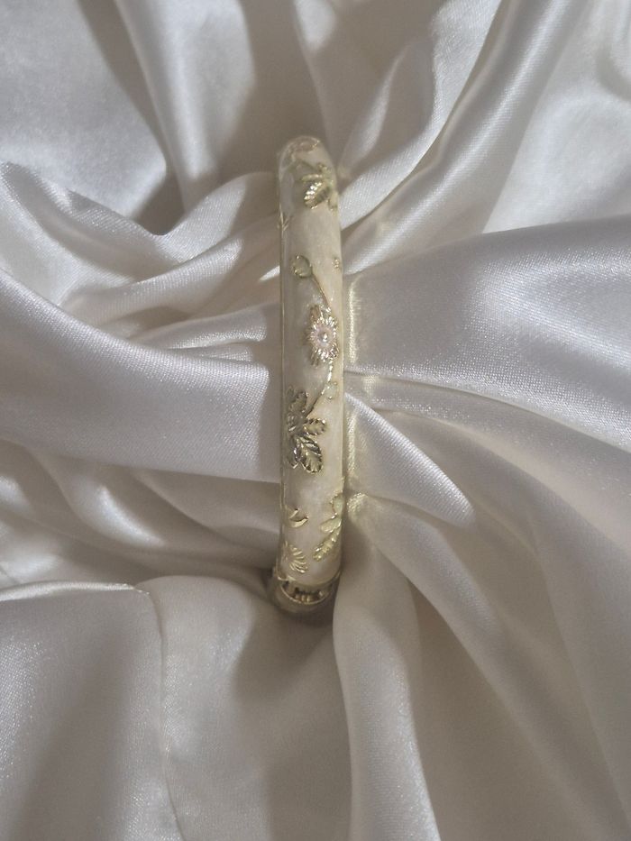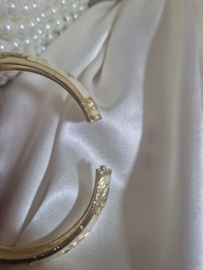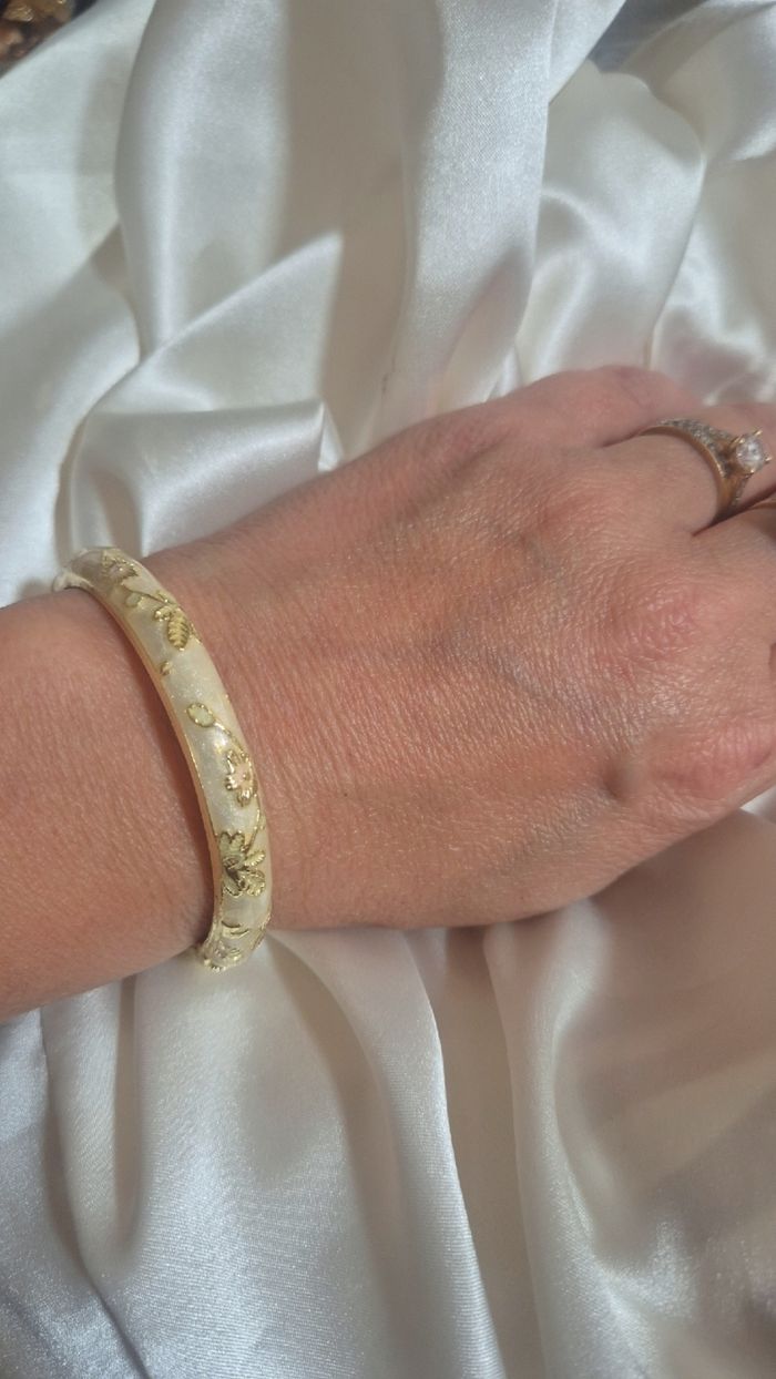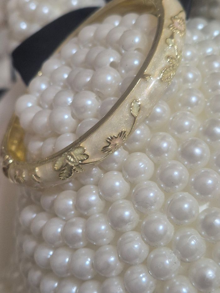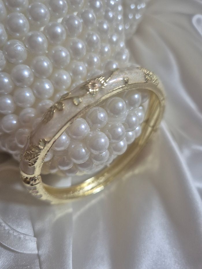 Bracelet a fleurs couleur crème doré Le bracelet s'ouvre Dimension bracelet nô ouvert 5,5 cm Envoie rapide et soigné