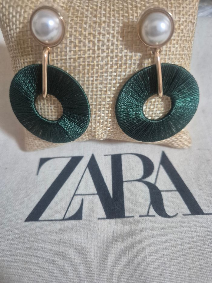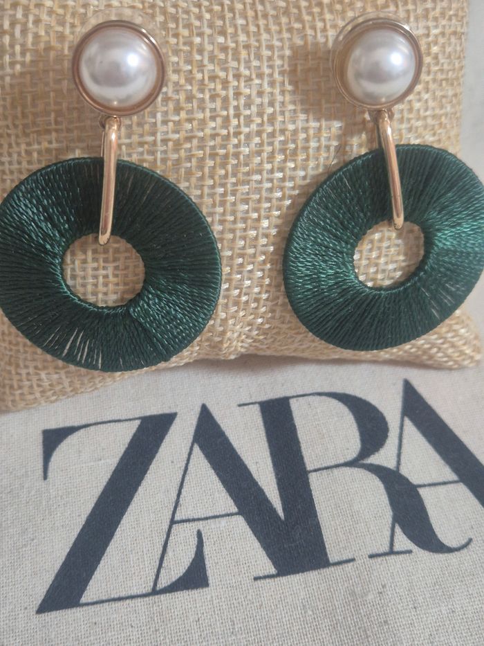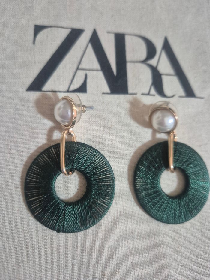 Boucles d'oreilles verte foncé doré avec perles  - photo numéro 1
