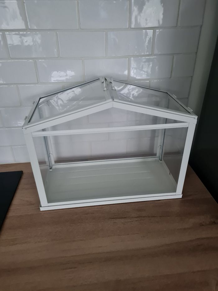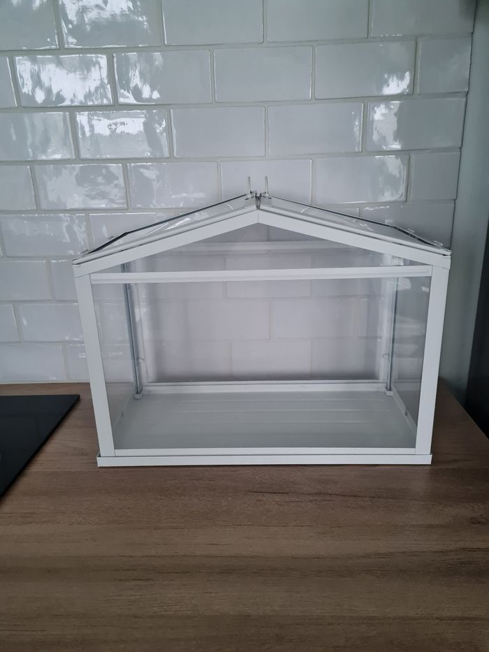Je vends cette mini-serre Ikea blanche, parfaite pour protéger vos plantes. - Type de produit : Mini-serre - Marque : Ikea - Couleur : Blanche - Utilisation : Protection des cultures, jardinage Dimensions : 45x35x22cm Très bon état