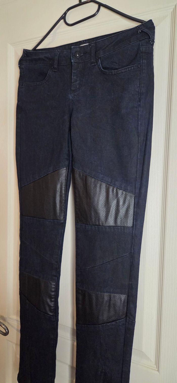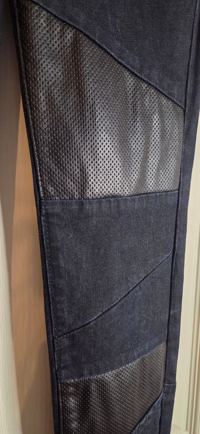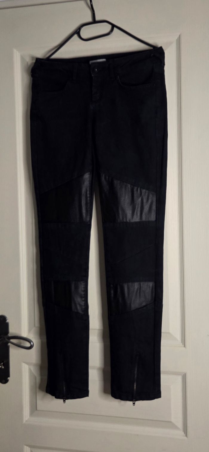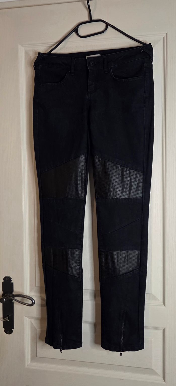 PROMOD – Pantalon Biker Noir & Bleu Foncé – T36 – Effet Cuir & Zips