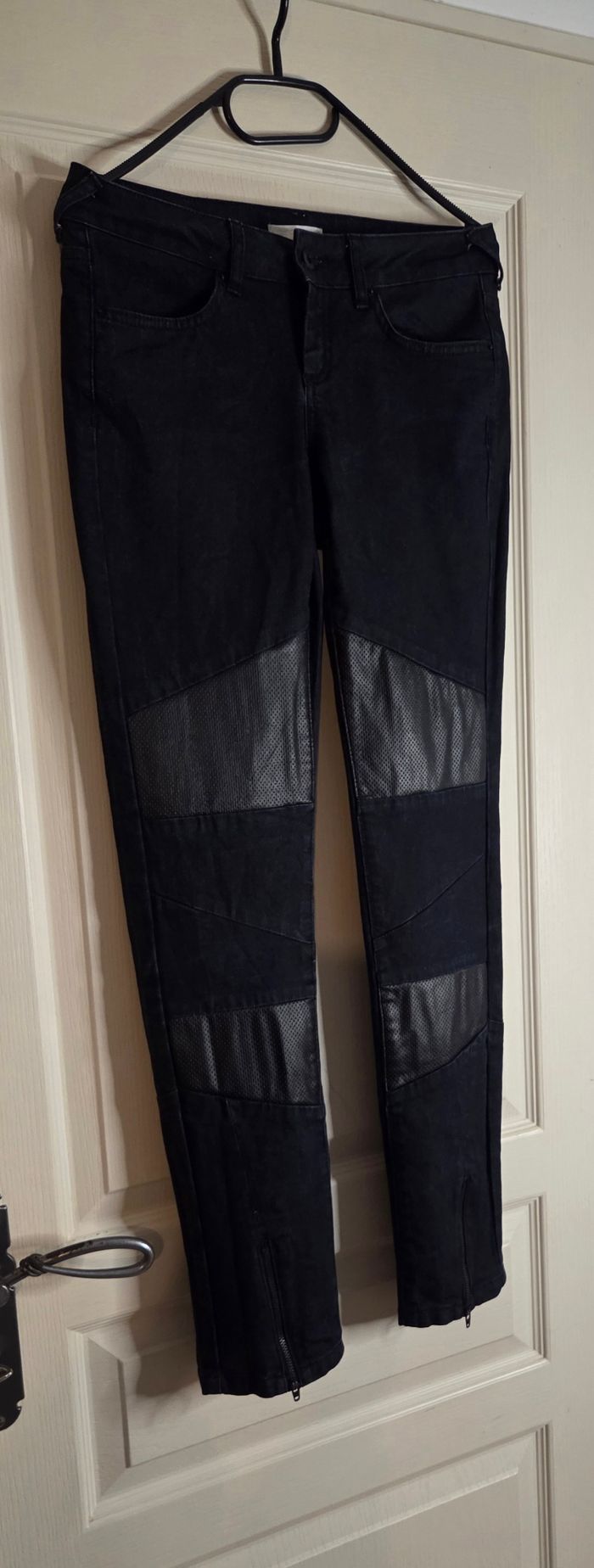 PROMOD – Pantalon Biker Noir & Bleu Foncé – T36 – Effet Cuir & Zips - photo numéro 1