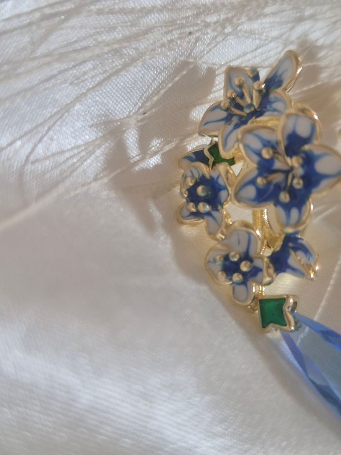 Boucles d'oreilles fleurs bleu doré  - photo numéro 5