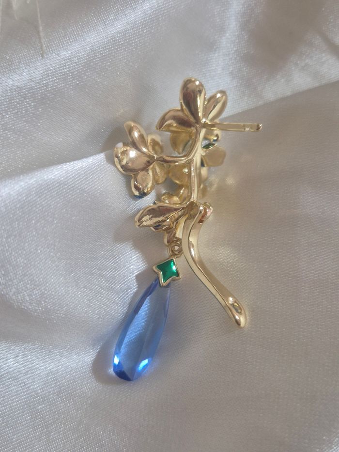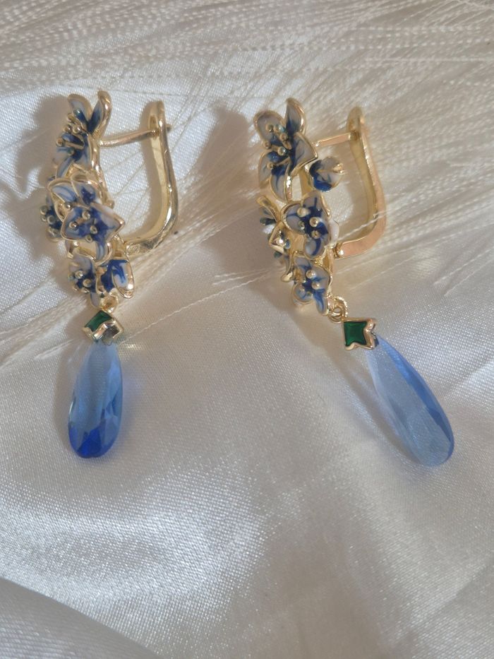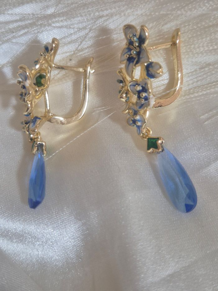 Boucles d'oreilles fleurs bleu doré  - photo numéro 3