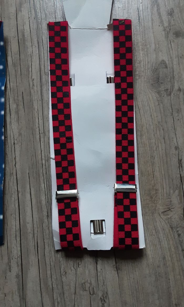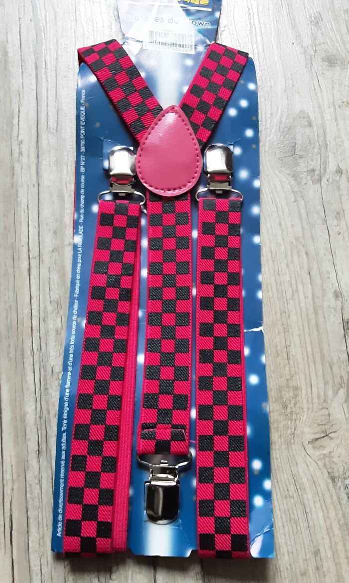 Lot de 4 bretelles de clown ou à l’unité ** 🎪 Ajoutez du fun à vos déguisements avec ce lot de 4 bretelles de clown ou à l’unité, neuves sans étiquette ! **Prix :** - **Lot de 4 bretelles :** 10€ - **À l’unité :** 3€ chacune **Détails :** - motifs à carreaux - Ajustables pour un confort optimal - La rigolade 💥 pour voir mes autres articles de fêtes cliquez ici 👉 #mimi6755_fête Parfaites pour les fêtes, anniversaires ou spectacles ! 🌟 **#Bretelles #Clown #Déguisement #Fête #Neuf**