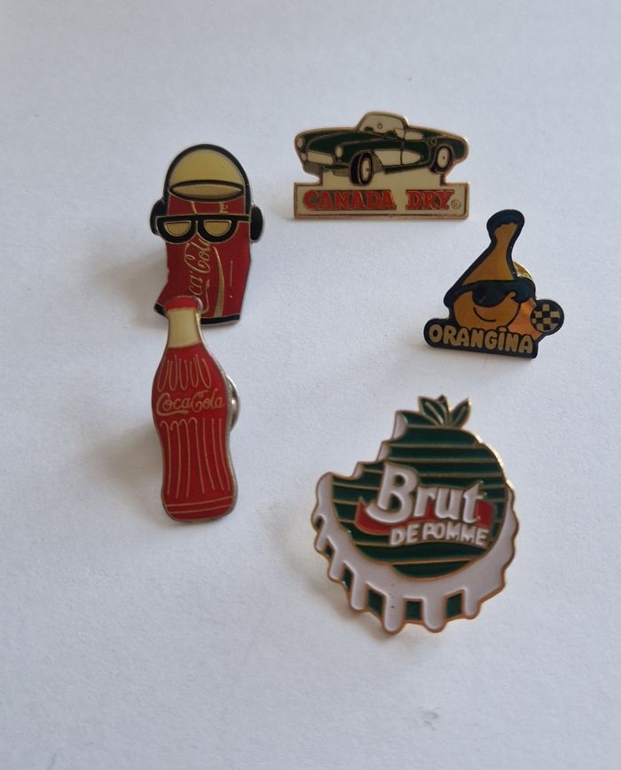 Lot 5 Pin's Vintage Sodas Coca-Cola Orangina Canada Dry Brut de Pomme - photo numéro 1