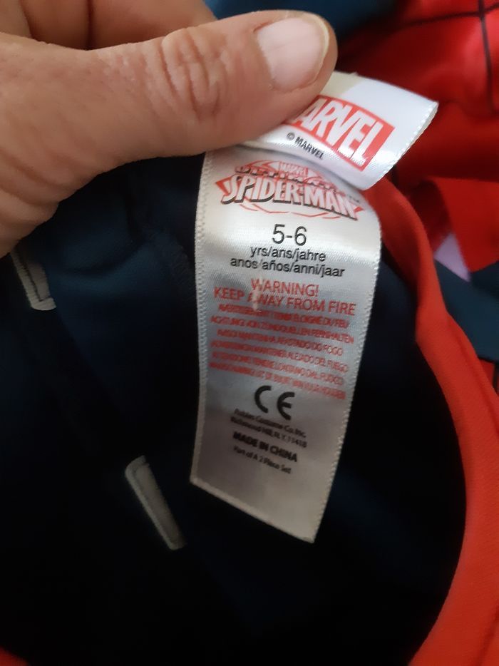Déguisement spiderman 4/5ans. Avec masque. Bon état,les scratchs tiennent bien, le plastron en mousse s'est un peu déformé au lavage. L'étiquette dit 5/6, mais pour moi c'est plutôt du 4/5. Propre, désinfecté avec sanytol.