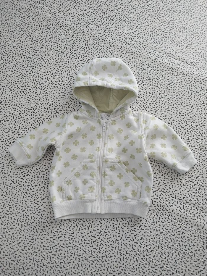 Gilet à capuche H&M bébé 2-4 mois 62 cm blanc vert trèfles zip - photo numéro 1