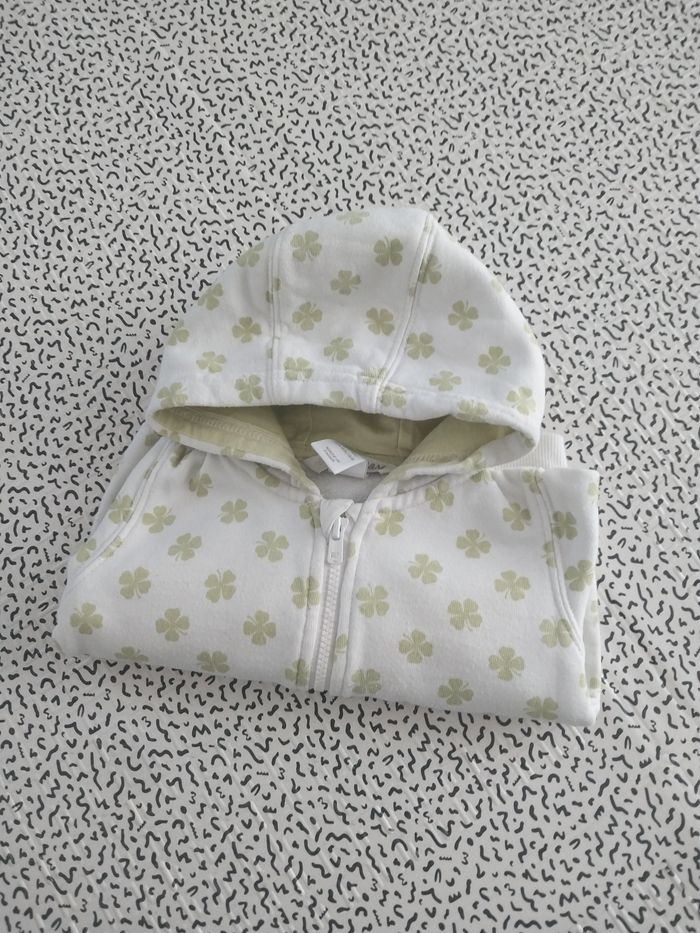 Gilet à capuche H&M bébé 2-4 mois 62 cm blanc vert trèfles zip - photo numéro 2