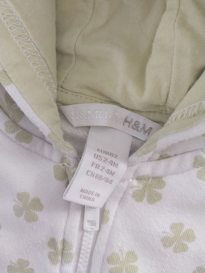 Gilet à capuche H&M bébé 2-4 mois 62 cm blanc vert trèfles zip - photo numéro 4