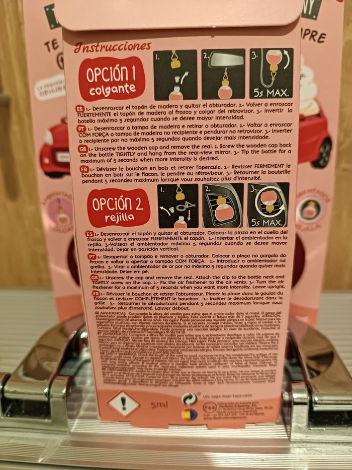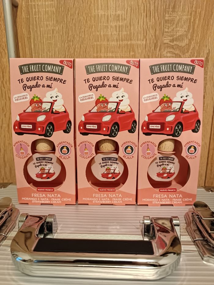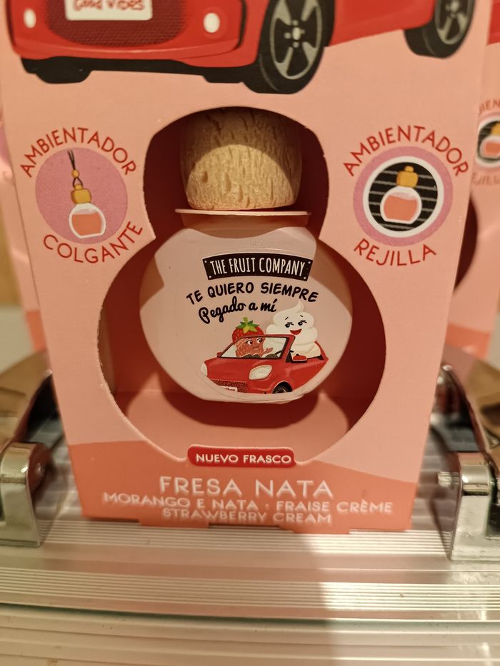 Lot 3 désodorisants d'ambiance voiture 3x5 ml senteur fraise chantilly avec double option (grille de ventilation ou suspendu au rétroviseur) Parfum longue durée. Neuf dans son emballage