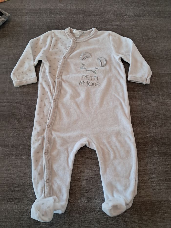 Grenouillére hiver blanche à poids gris Marque Mes petits cailloux Taille 12 mois Réduction sur les lots jusqu'a -20% Réduction sur les frais de livraison