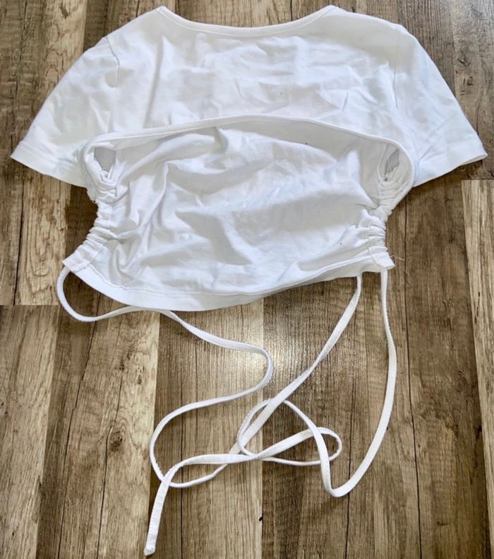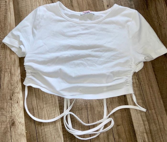 Haut court couleur blanc avec laçage dans le dos bon état taille xs marque Jennyfer