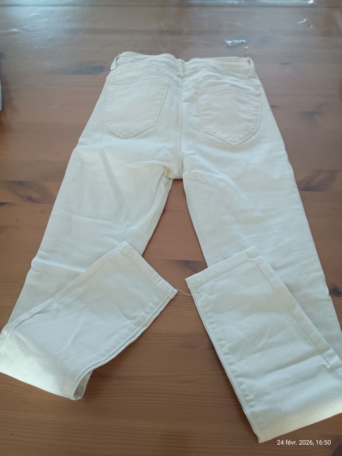 Je vends ce pantalon slim blanc femme, taille S. Un incontournable du vestiaire pour créer des looks épurés et intemporels. - Type de produit : Pantalon - Univers : Femme - Taille : 36 - S - Couleur : Blanc - Caractéristiques : Poches, Fermeture éclair et bouton N'hésitez pas à me contacter pour plus d'informations ou de photos.