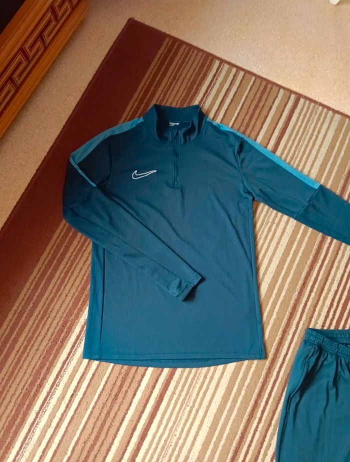 Très joli ensemble bleu Dri Fit, taille S, en excellent état mais mon fils a eu la mauvaise idée de couper les étiquettes. Couleur bleue en excellent état.