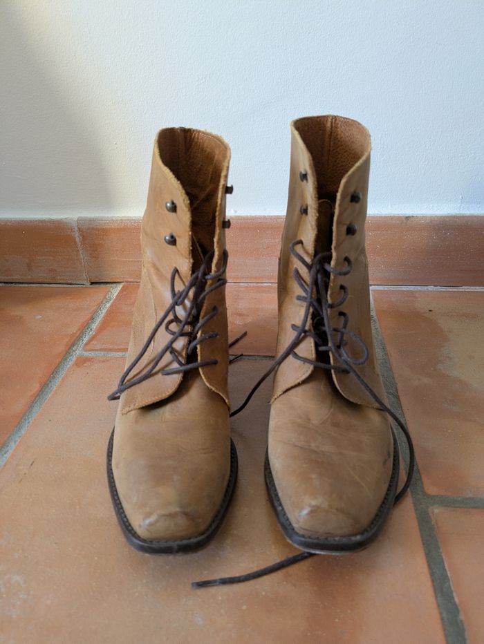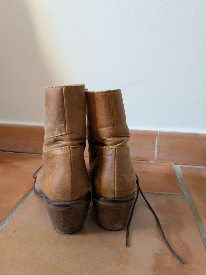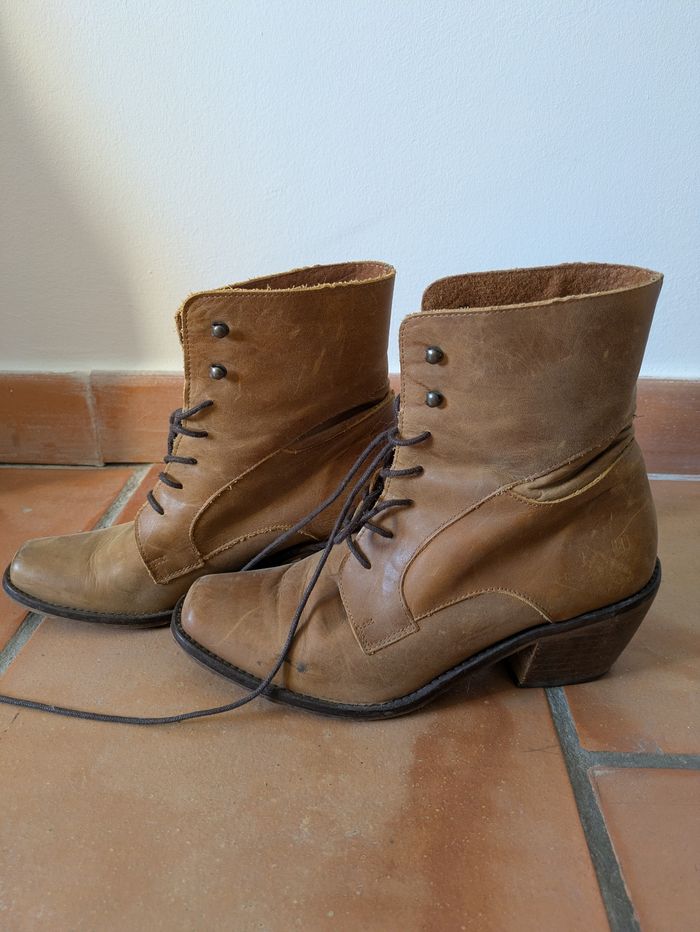 Bottines en cuir marron Marque Mustang Le cuir a besoin d'être nourri Talon 5,5cm Pointure 40
