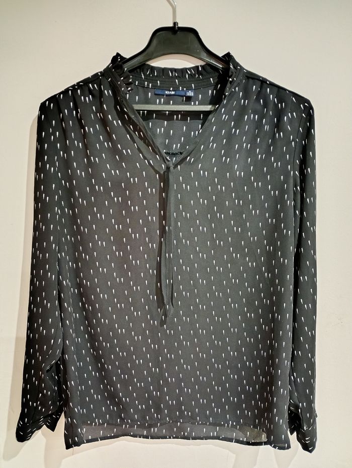 Je vends ce joli chemisier de la marque Kiabi, en excellent état. C’est une pièce fluide et légère, idéale pour un look de bureau élégant ou une sortie décontractée. Taille : 38 (M) Couleur : Noir avec petits motifs Manches : Manches longues État : Très bon état, peu porté