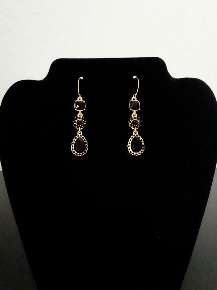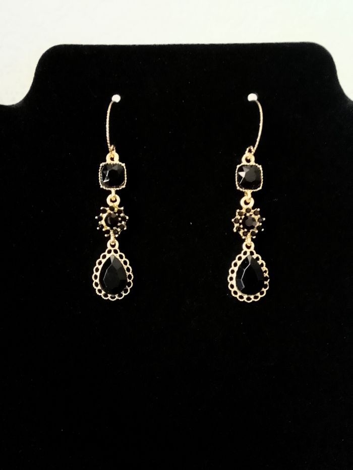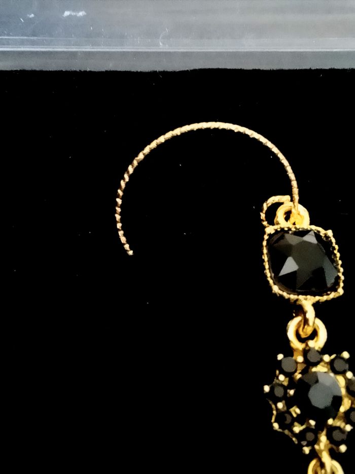 Boucles d’oreilles pendante élégante. (élégante, bohème, boho-chic, ethnique, idéal cadeau) DESCRIPTIF : Couleur : noir, doré. Dimension : 5,3 cm H. Envoi rapide et soigné.